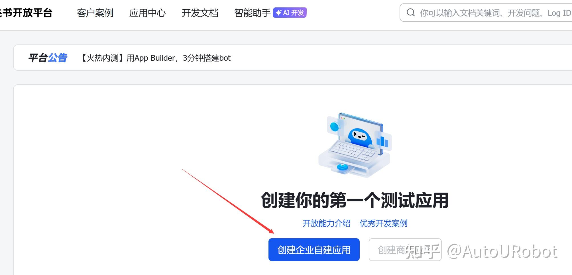 1.打开飞书网址:https://open.feishu.cn/app,选择企业自建应用