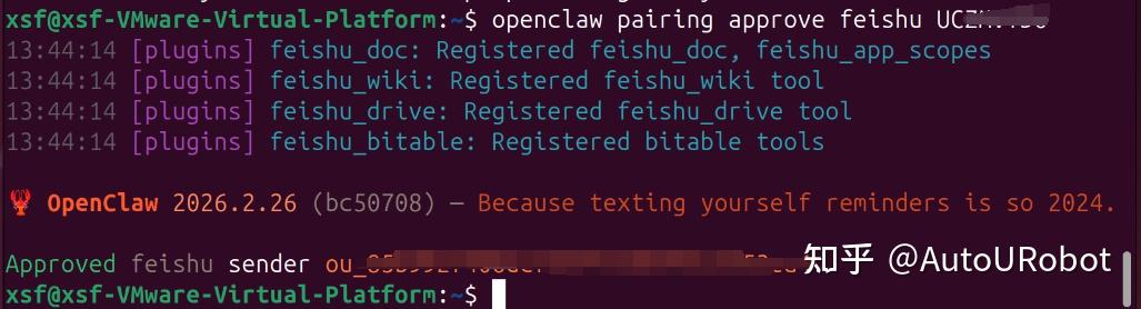 讯享网openclaw pairing approve feishu <CODE>