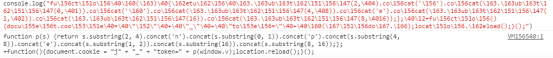 继续将eval改为console.log,运行该脚本,在Chrome的console中输出js代码输出结果;发现还是一段以eval开始的js代码,像剥洋葱一样一层一层继续重复上述过程,直到我们到了下面的内容。
