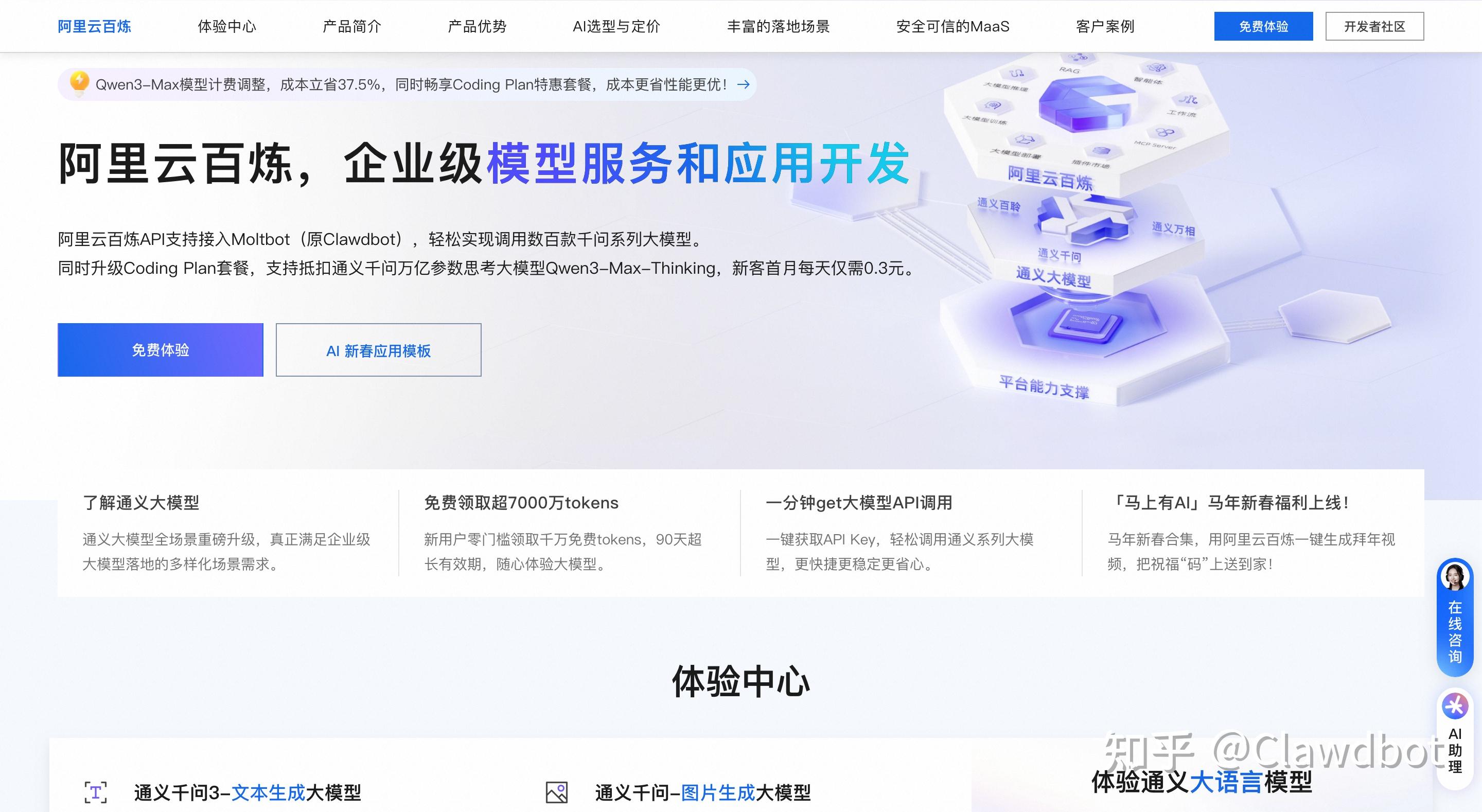 - 领取免费额度:新用户登录后,会自动弹出“领取免费额度”提示,点击“立即领取”,即可领取90天免费模型调用额度(超7000万tokens),足够前期测试使用;若免费额度耗尽,可充值或订阅百炼Coding Plan套餐,享受固定月费与月度调用额度,性价比更高,Coding Plan仅支持抵扣qwen3-max-2026-01-23和qwen3-coder-plus模型调用费用,不支持调用多模态模型;