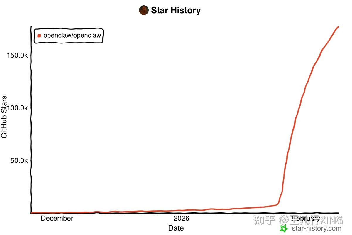 OpenClaw(原名 Clawdbot → Moltbot → OpenClaw)是一个开源的个人 AI 助手运行时,由 PSPDFKit 创始人 Peter Steinberger 于 2026 年初发起。项目在 72 小时内增长超过 6 万 Star,2 周内突破 15 万 Star,成为 GitHub 史上增长最快的开源项目之一。