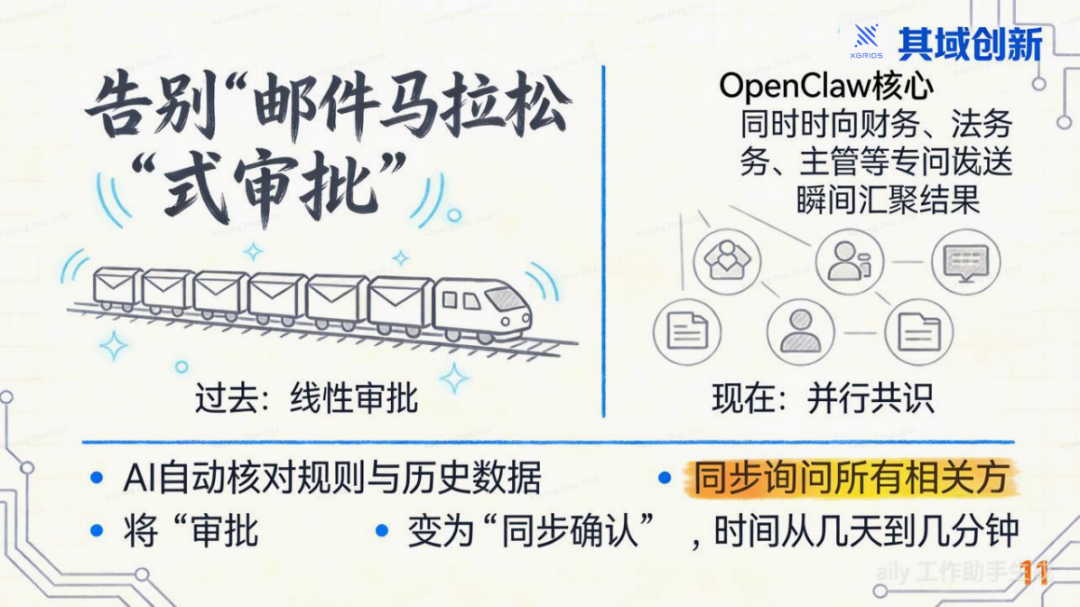 传统审批流程像一场漫长的“邮件马拉松”。AI OS可同时向所有相关方发起询问,自动核对规则与历史数据,把漫长的“层层审批”变成高效的“同步确认”,时间从几天缩短到几分钟。