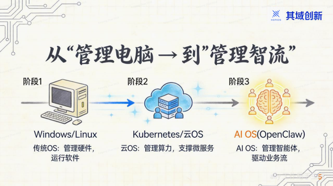 计算产业经历了从“管理硬件”的传统OS,到“管理算力”的云OS的演进。现在,我们正站在第三个拐点:管理“智能流”的AI OS。