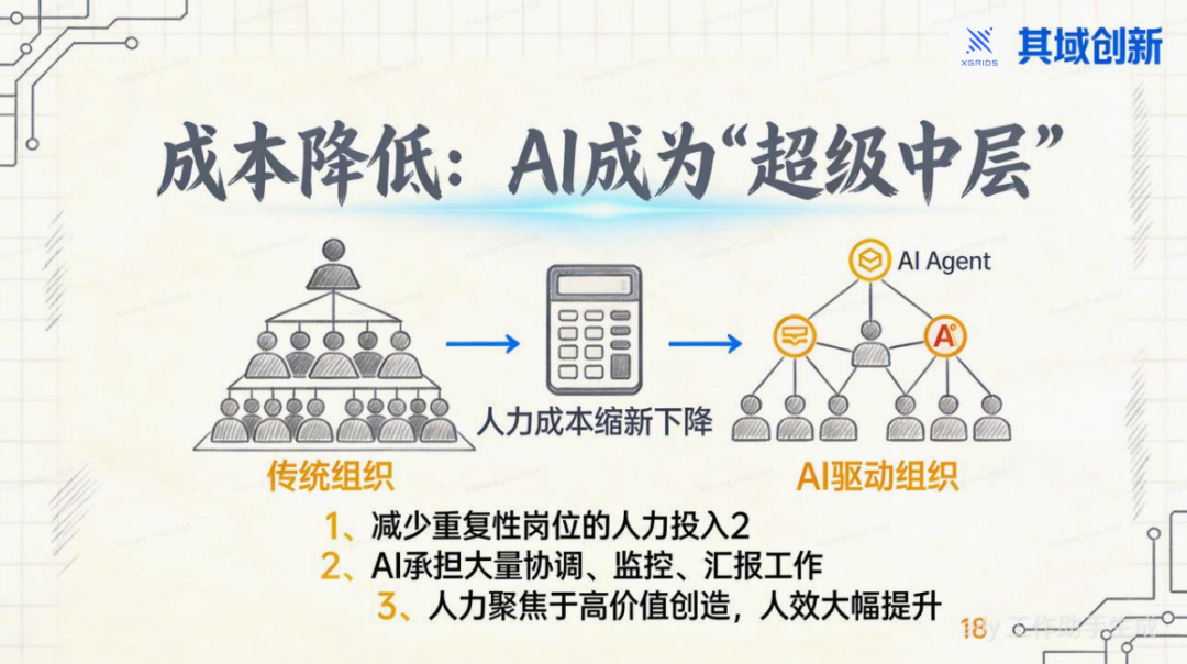 AI承担了大量沟通、监控、汇总的中层协调工作,相当于一个高效的“数字中层”,让人力更聚焦于高价值工作。