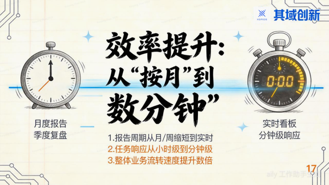 业务响应速度从以“天/周”计,变成以“分钟/实时”计,整体运转大大加快。