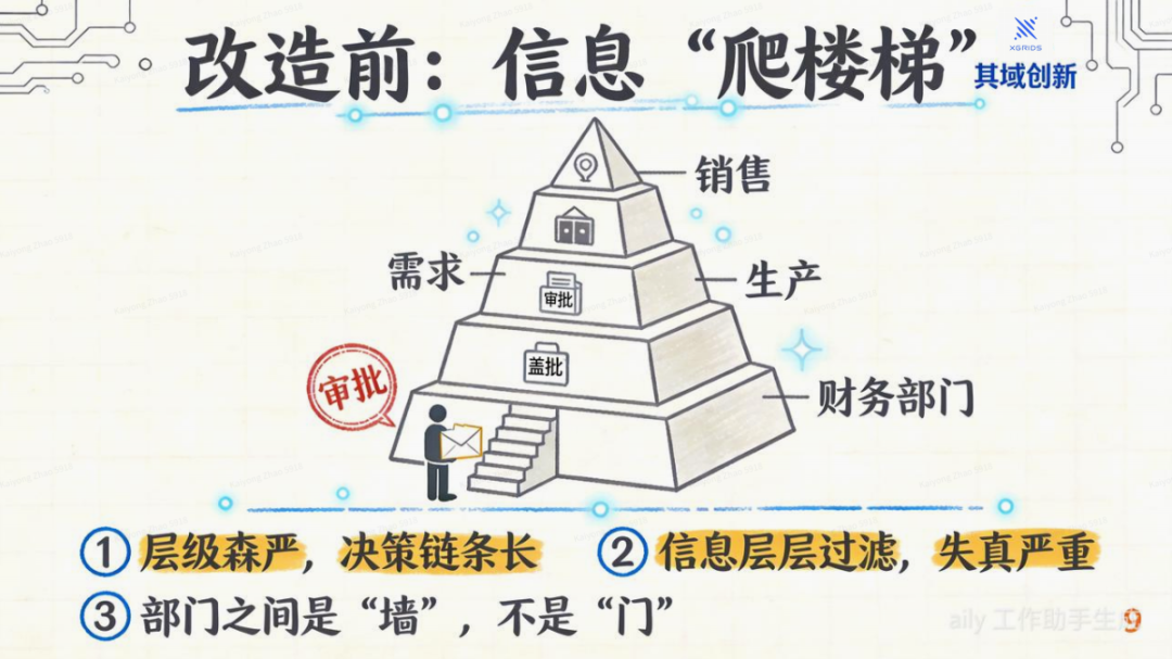 在传统架构下,信息流转如同“爬楼梯”,必须穿透复杂的行政层级和部门屏障。每一层审批和传达都伴随着信息的过滤与损耗,导致决策链条过长且反馈失准。
