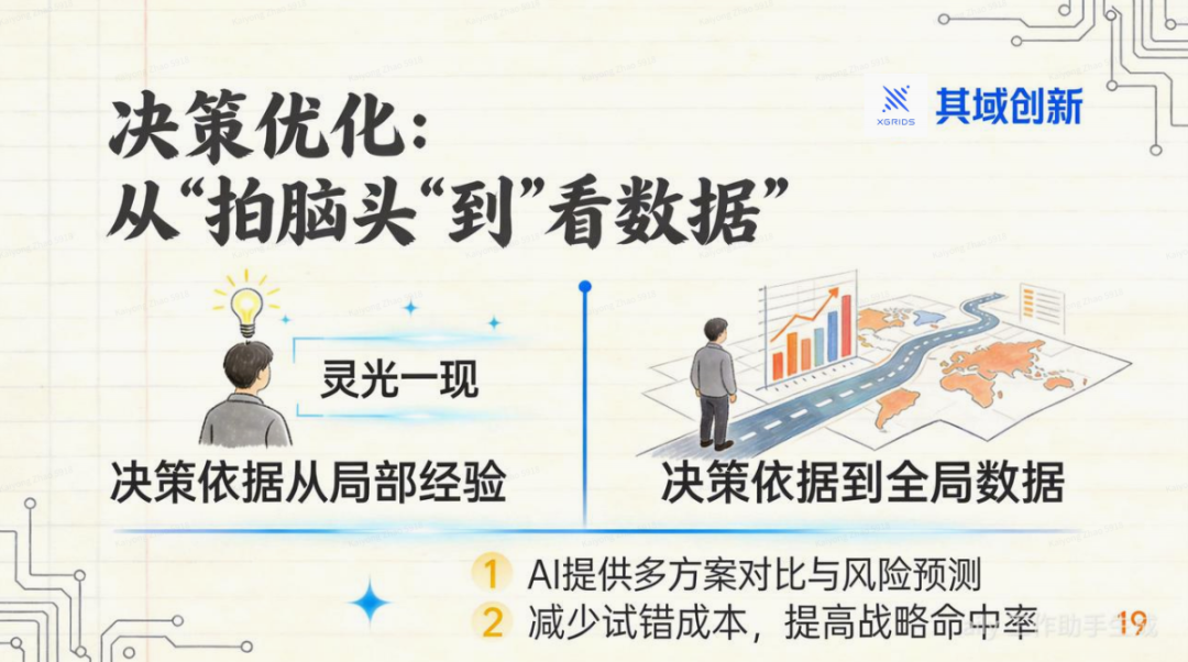AI能提供不同方案的对比和风险预测,减少“拍脑袋”决策,提高成功率。