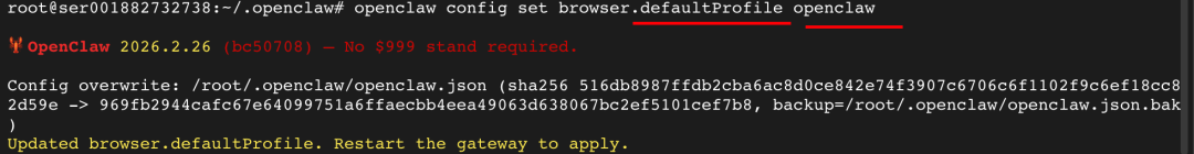 openclaw config set browser.defaultProfile openclaw