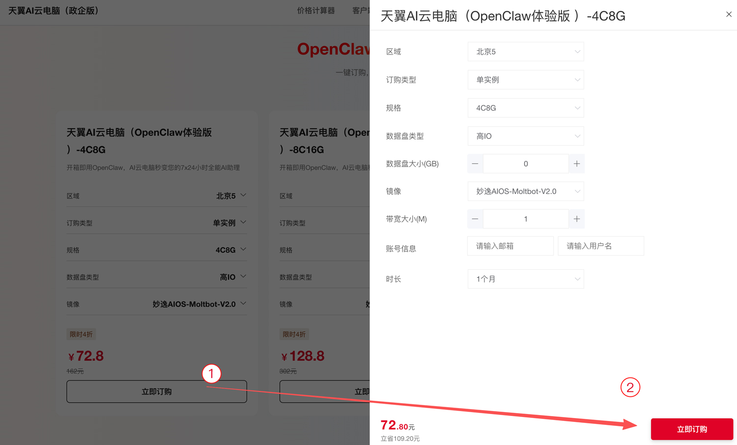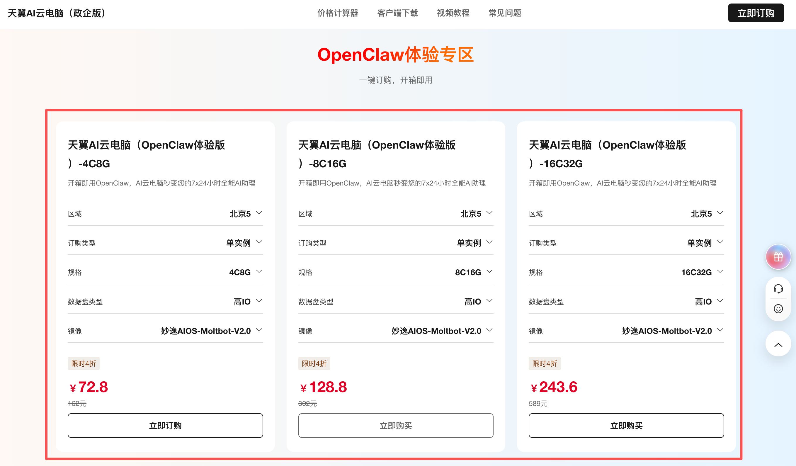 免费体验云电脑到期后,若需继续使用,可参考以下流程,前往官网开通天翼AI云电脑(OpenClaw体验版)。