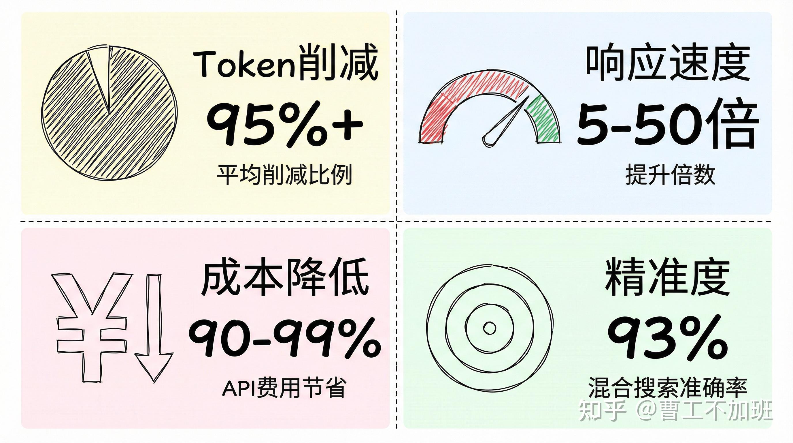 ✅ 5-50 倍的速度提升 ✅ 90-99% 的成本降低 ✅ 93% 的精准度 ✅ 完全本地运行,零 API 成本 ✅ 彻底解决长会话卡死问题