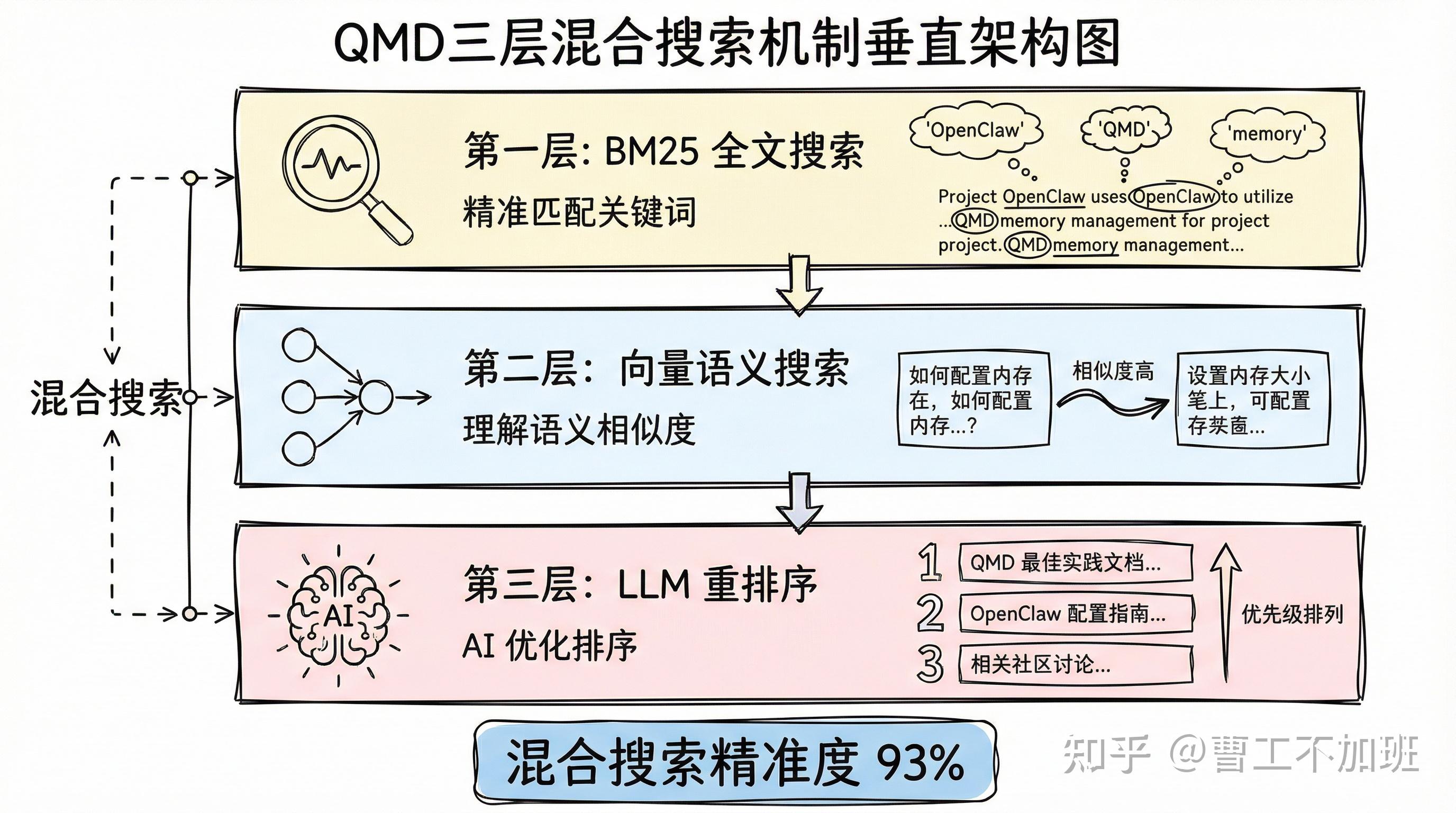 QMD 采用三层混合搜索机制: