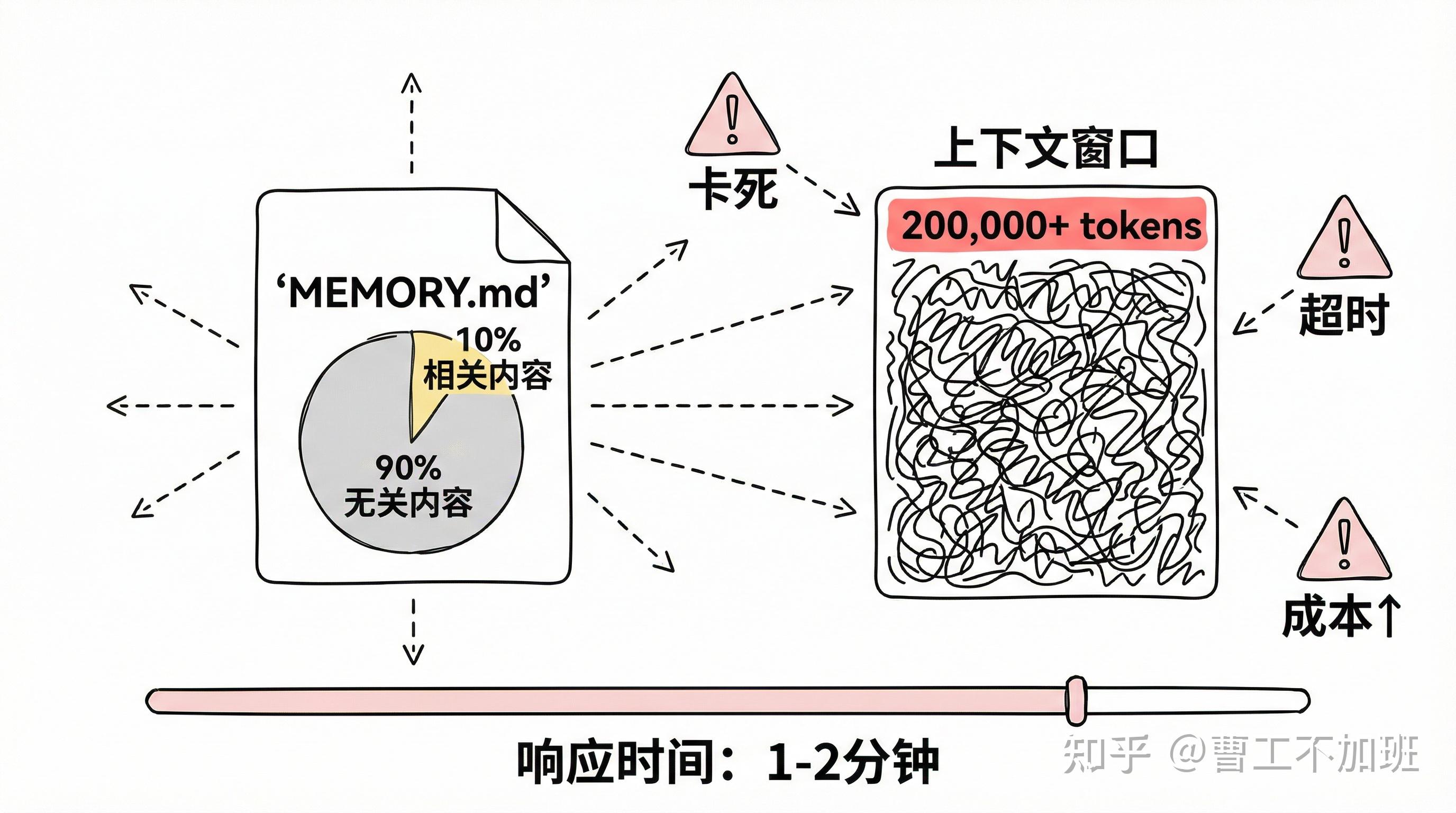 传统的记忆系统会把整个 MEMORY.md 文件直接塞进上下文。但其中 90% 的内容可能和当前问题毫无关系。上下文越长,请求就越慢,成本也越高,AI 还容易被无关信息干扰。