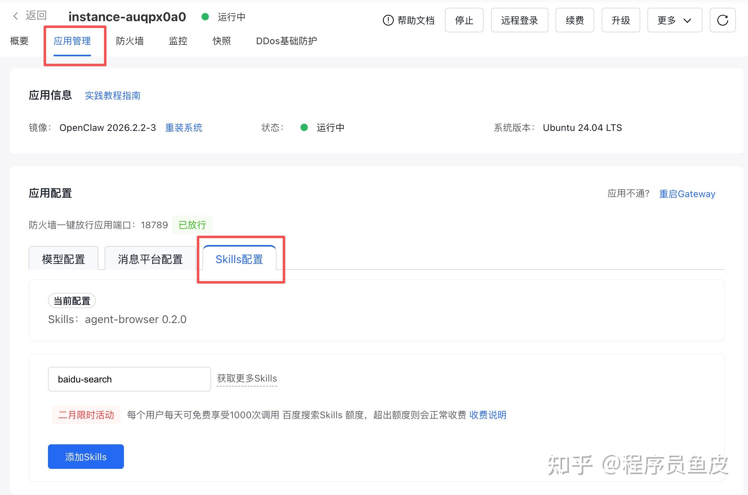 如果你使用百度智能云安装 OpenClaw,安装技能就非常简单了。
