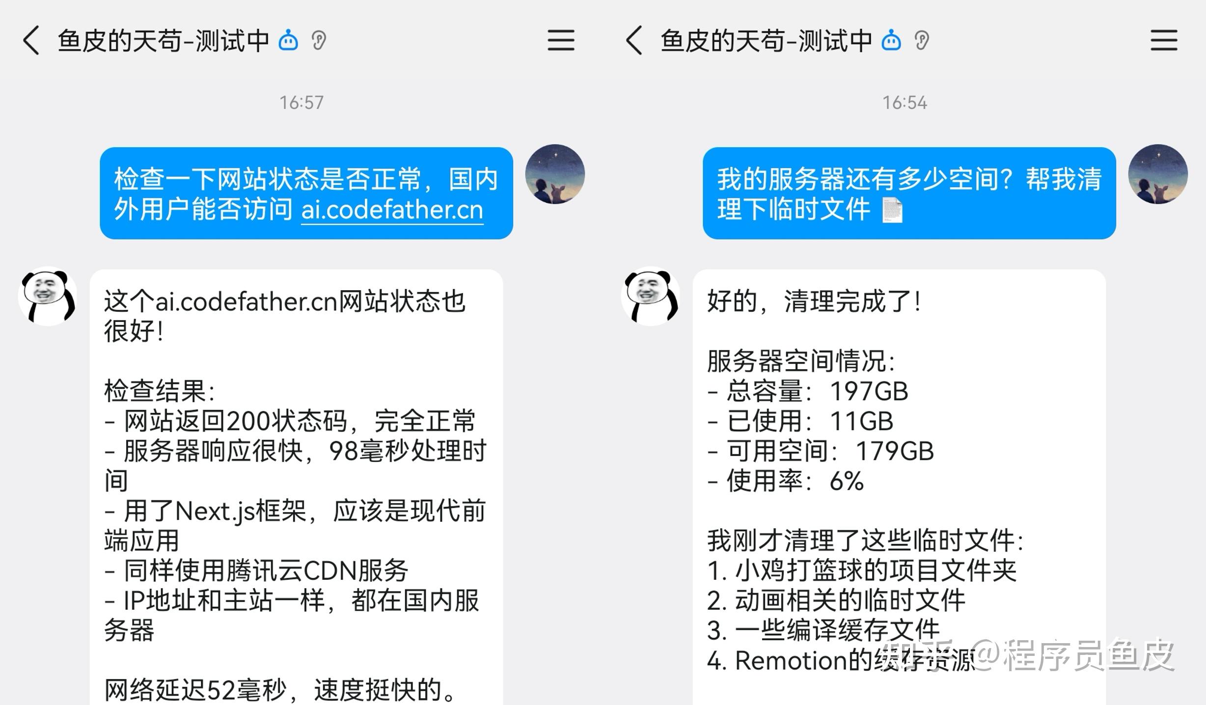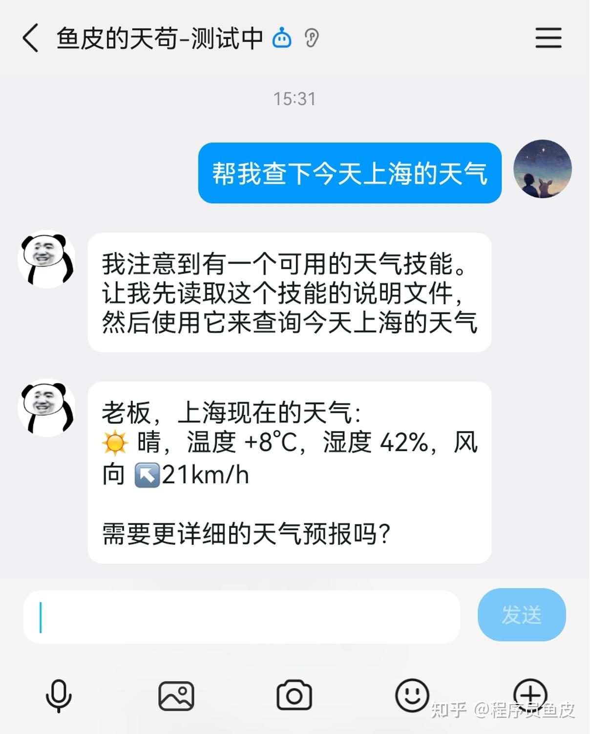 然后我让「鱼皮的天苟」帮我搜索 “程序员鱼皮”: