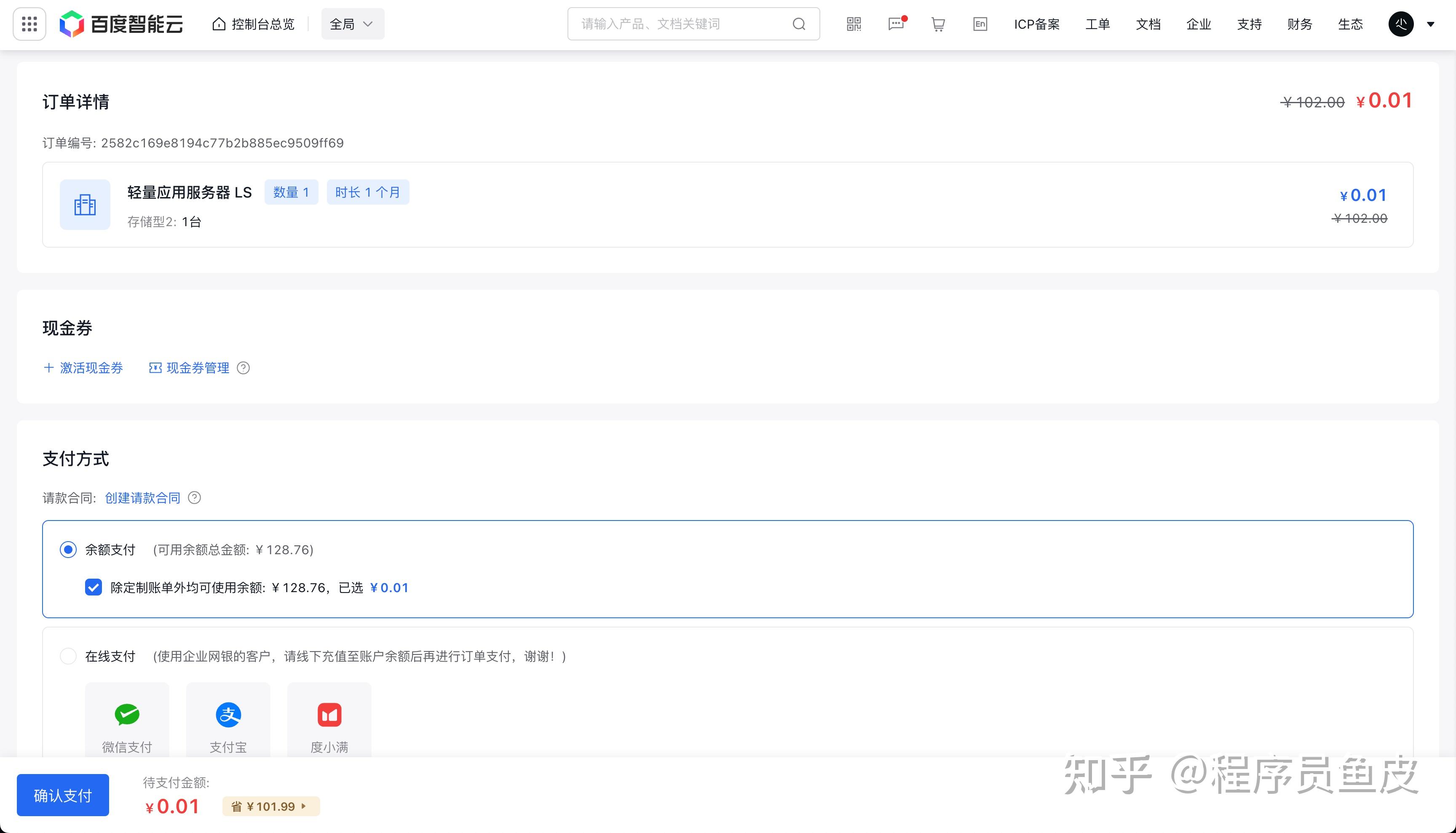 先分享一种最简单获取服务器的方法,打开百度智能云为 OpenClaw 特制的「极简部署页面」,只需 0.01 元,就能抢购到一台 2核4G4M 的轻量应用服务器,免费体验 1 个月。
