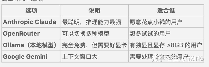 - 不需要花一分钱(除非你想用 Claude/GPT 这种付费模型的 API)