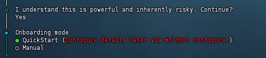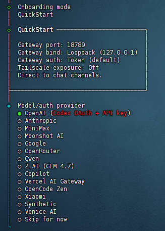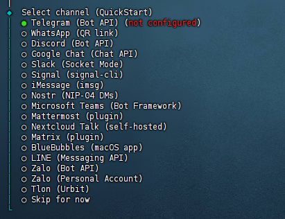 第一个是快速启动,后续通过 openclaw configure 配置信息。