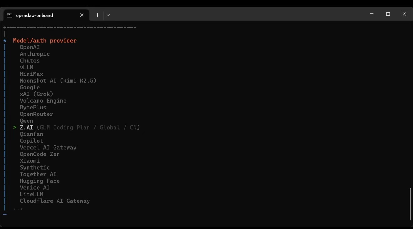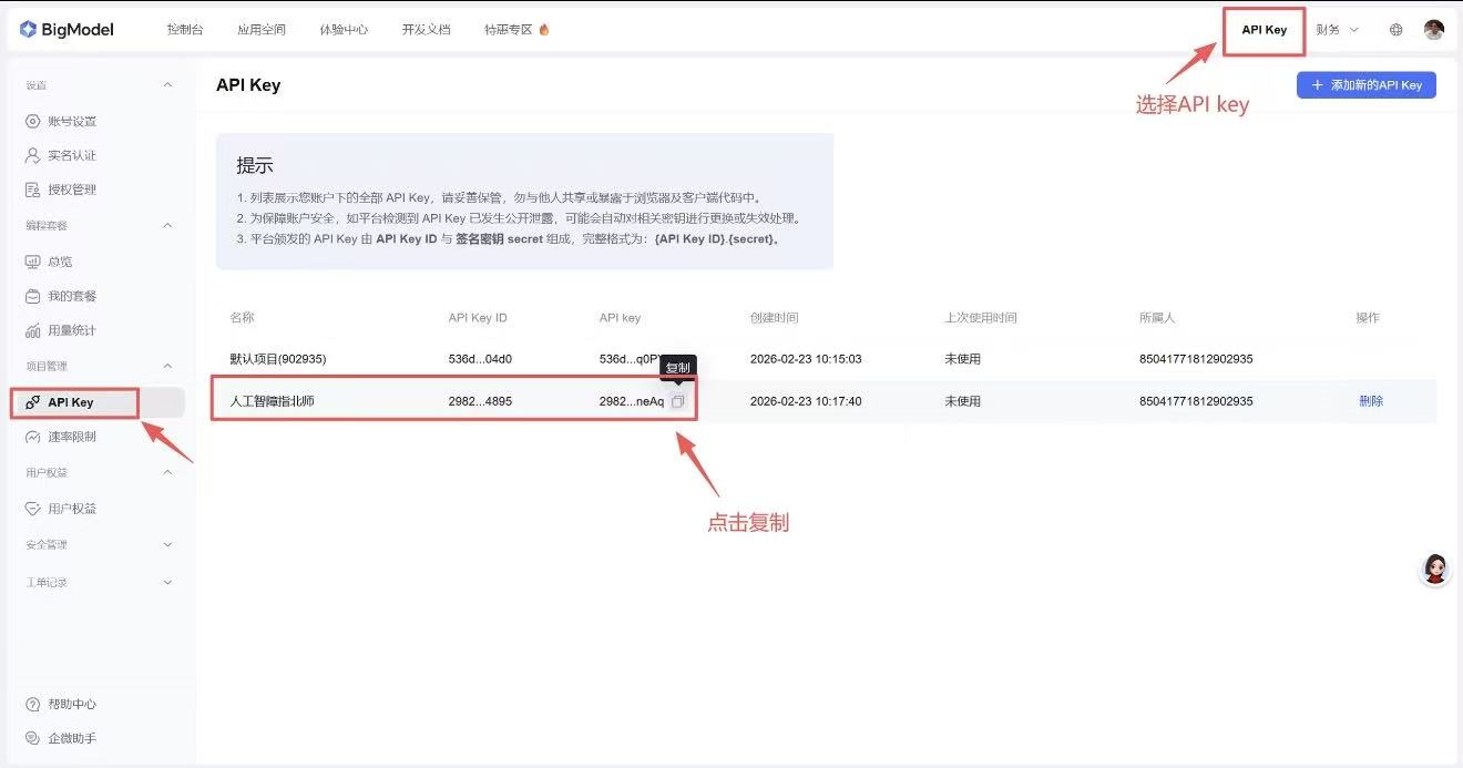 3.模型选Z.AI,然后选GLM4.7就行。记得把上面复制的APIKEY复制过来。