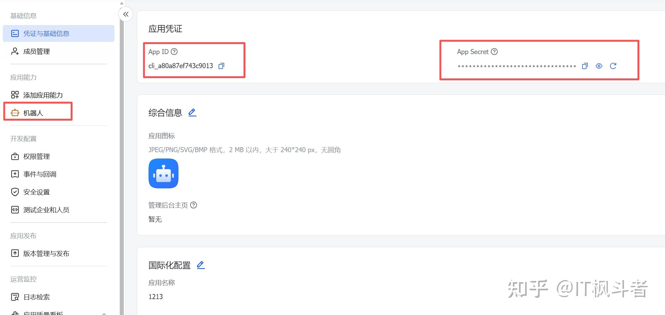 这两个参数用于 OpenClaw 与飞书的鉴权,务必妥善保存。
