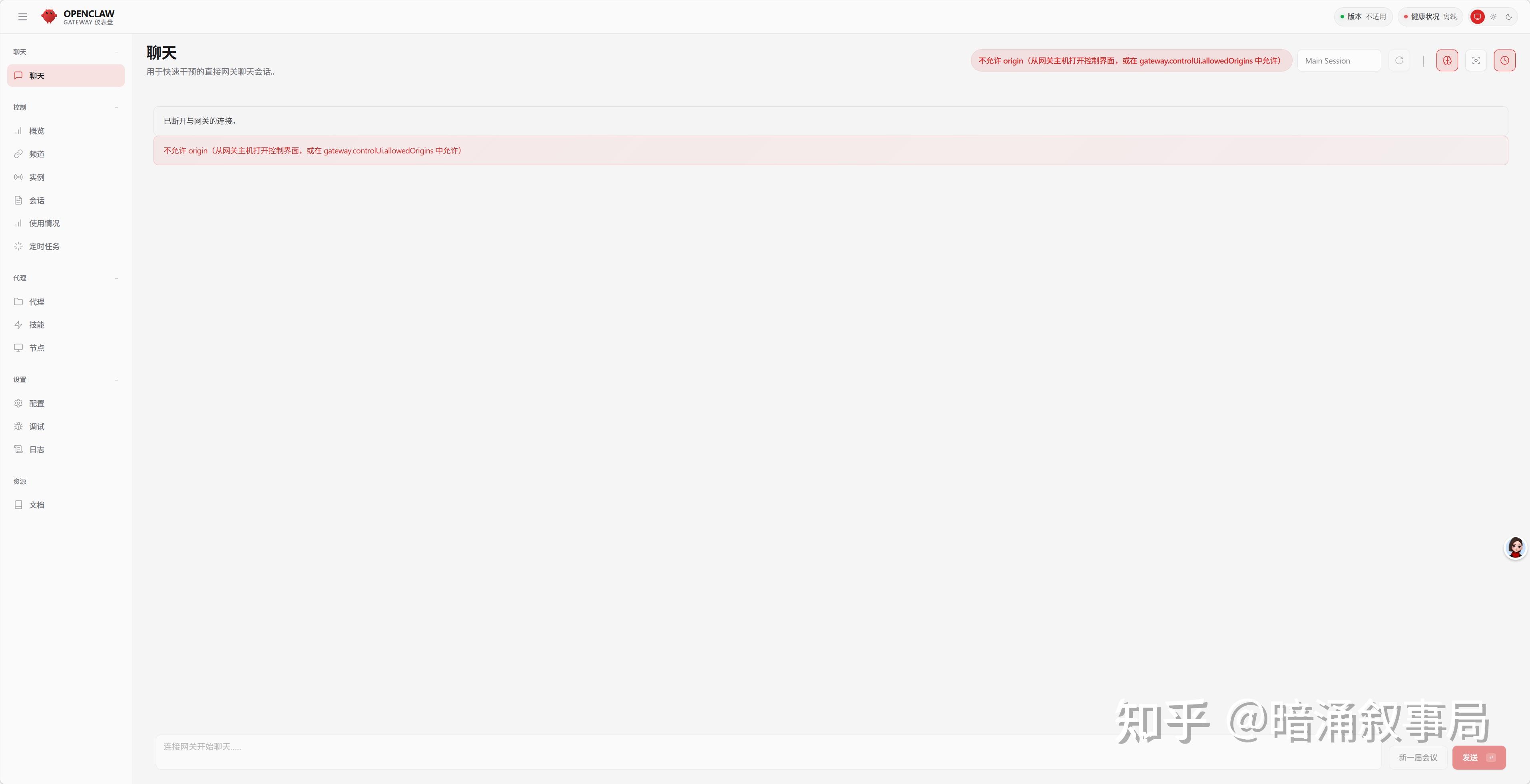这一情况表示页面上的“不允许 origin”和“已断开与网关的连接”这两个提示,把问题指向了同一个原因:你是在用公网 IP (http://XXXXXXXXX.) 远程访问,但 OpenClaw 的网关出于安全考虑,默认只信任来自本机 (localhost 或 127.0.0.1) 的连接。