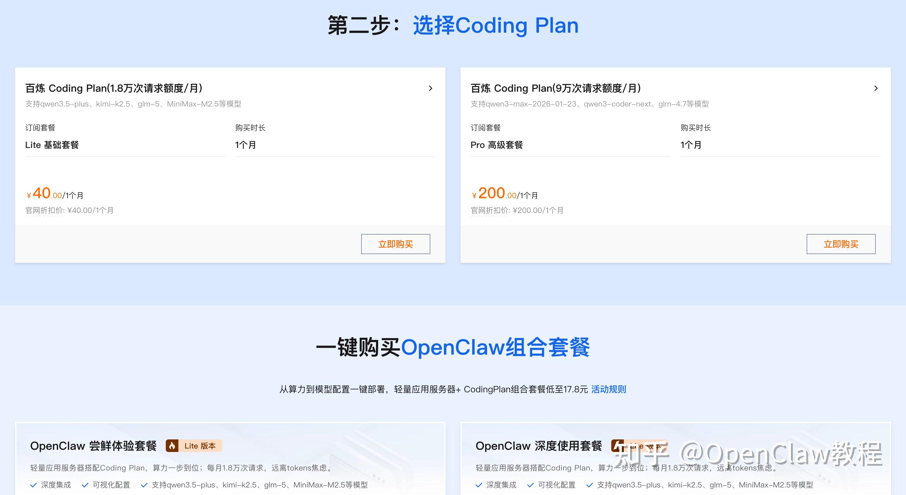 第一步:打开访问阿里云OpenClaw一键部署专题页面,找到并点击【一键购买并部署】。