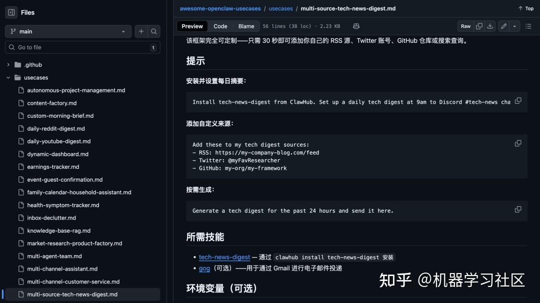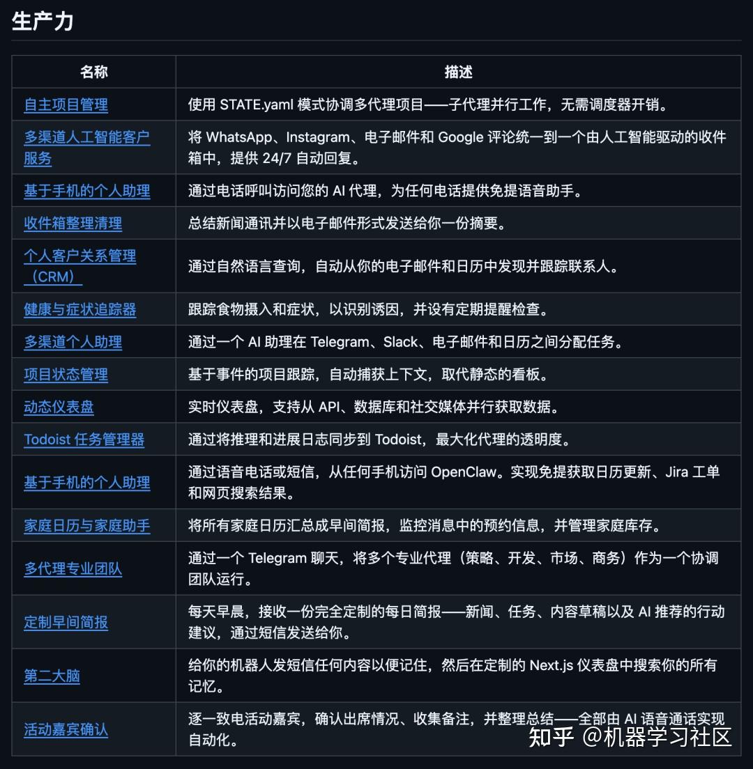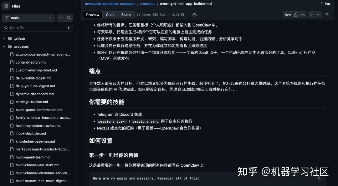 awesome-openclaw-usecases 目前收录了 30 多个经过验证的真实使用场景。