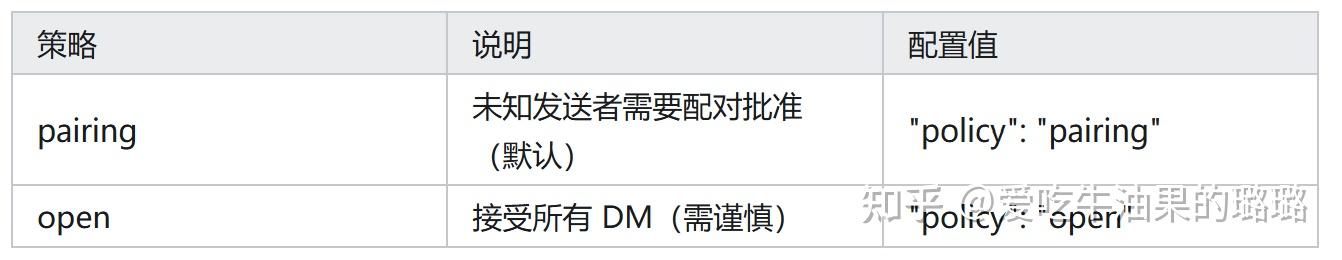 讯享网"<channel>": { "dm": { "policy": "open", "allowFrom": ["*"] } }