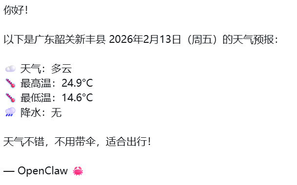 其他所有操作(装依赖、跑脚本、发消息、改文件等)OpenClaw 都能自主完成,无需你干预。