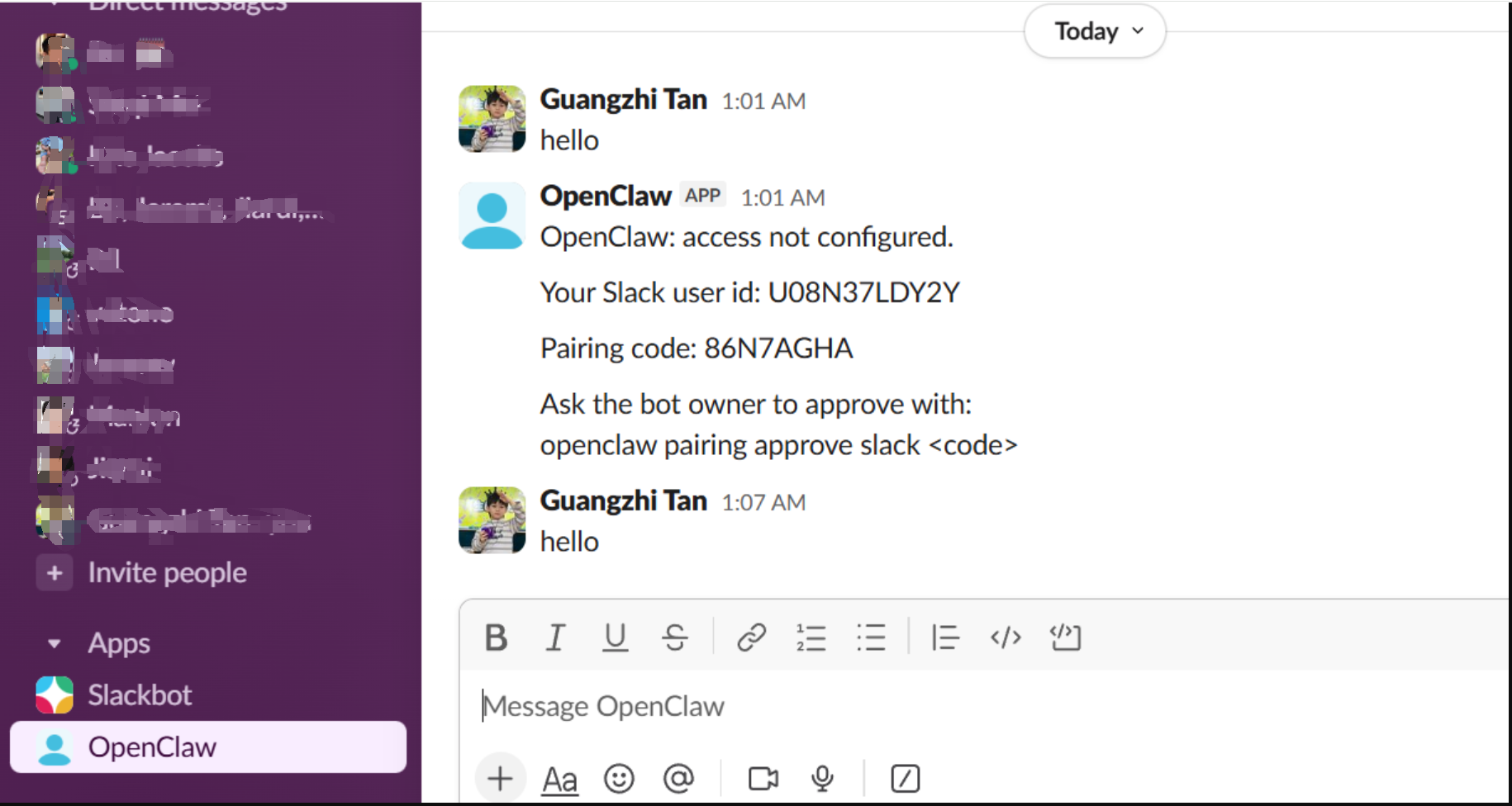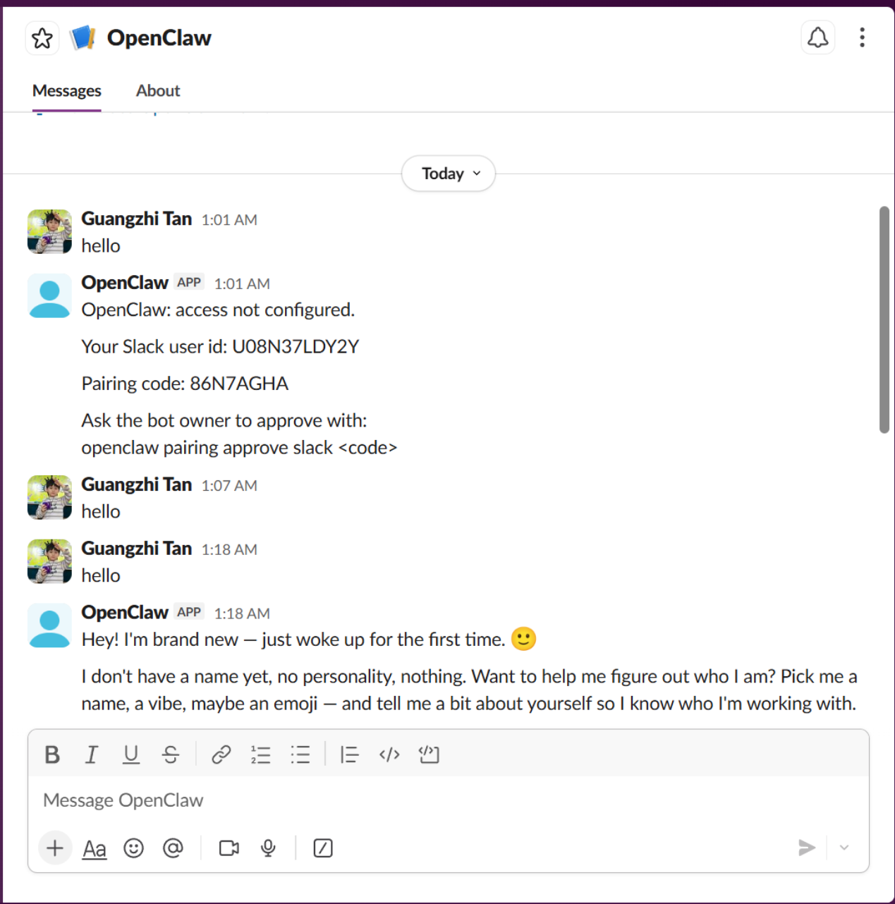 配置好 Slack 后,你可以在电脑或手机 Slack App 中随时发消息给 OpenClaw: