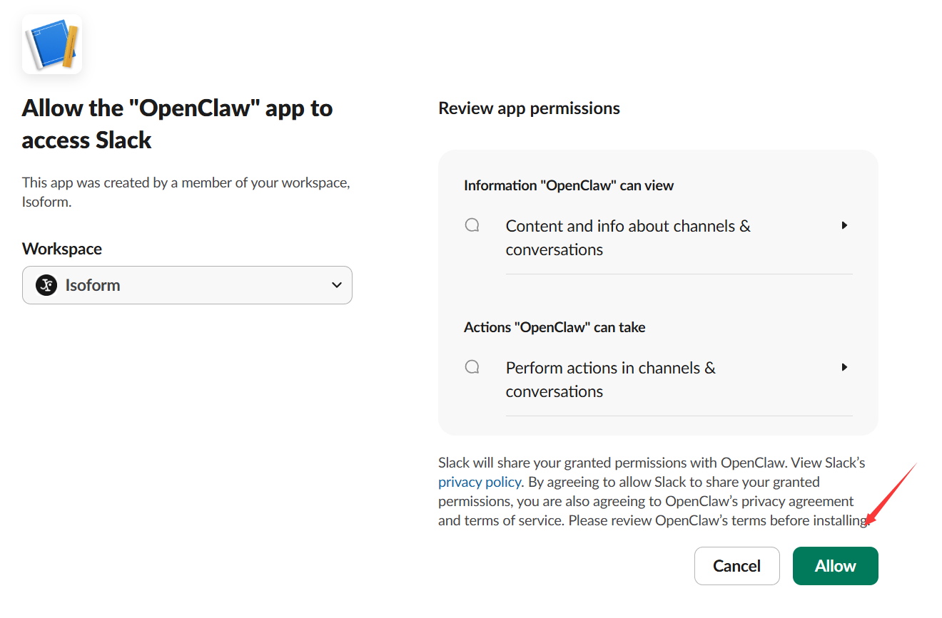 💡 OpenClaw 支持多种聊天渠道(Telegram、WhatsApp、Discord、Signal 等),这里以 Slack 为例。