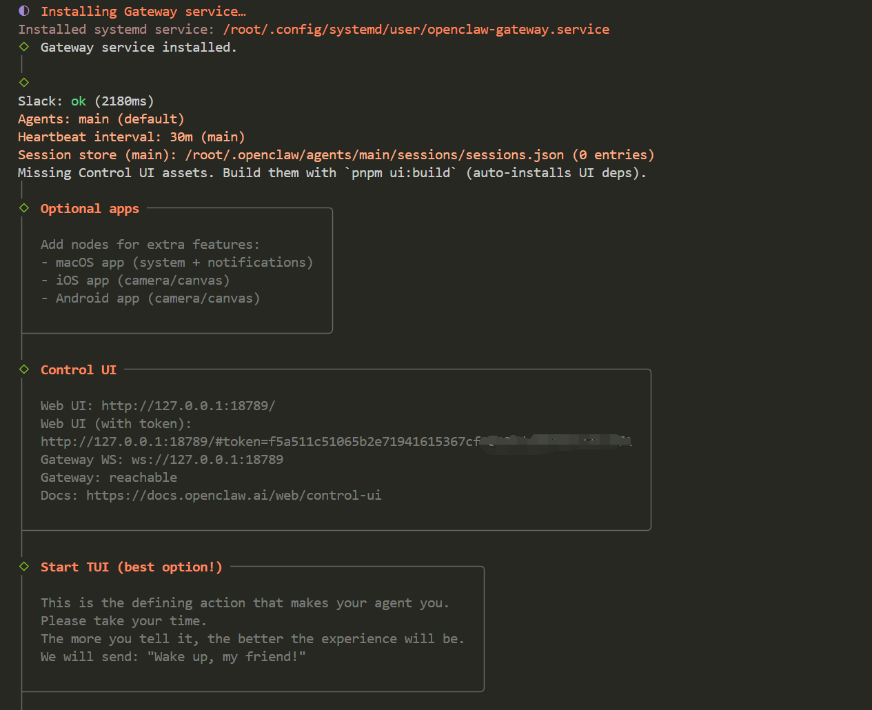 💡 退出 TUI()不会停止 Gateway,Slack 仍然可以正常使用。
