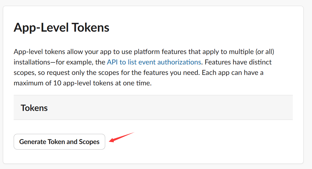 - 滚动到 App-Level Tokens 区域