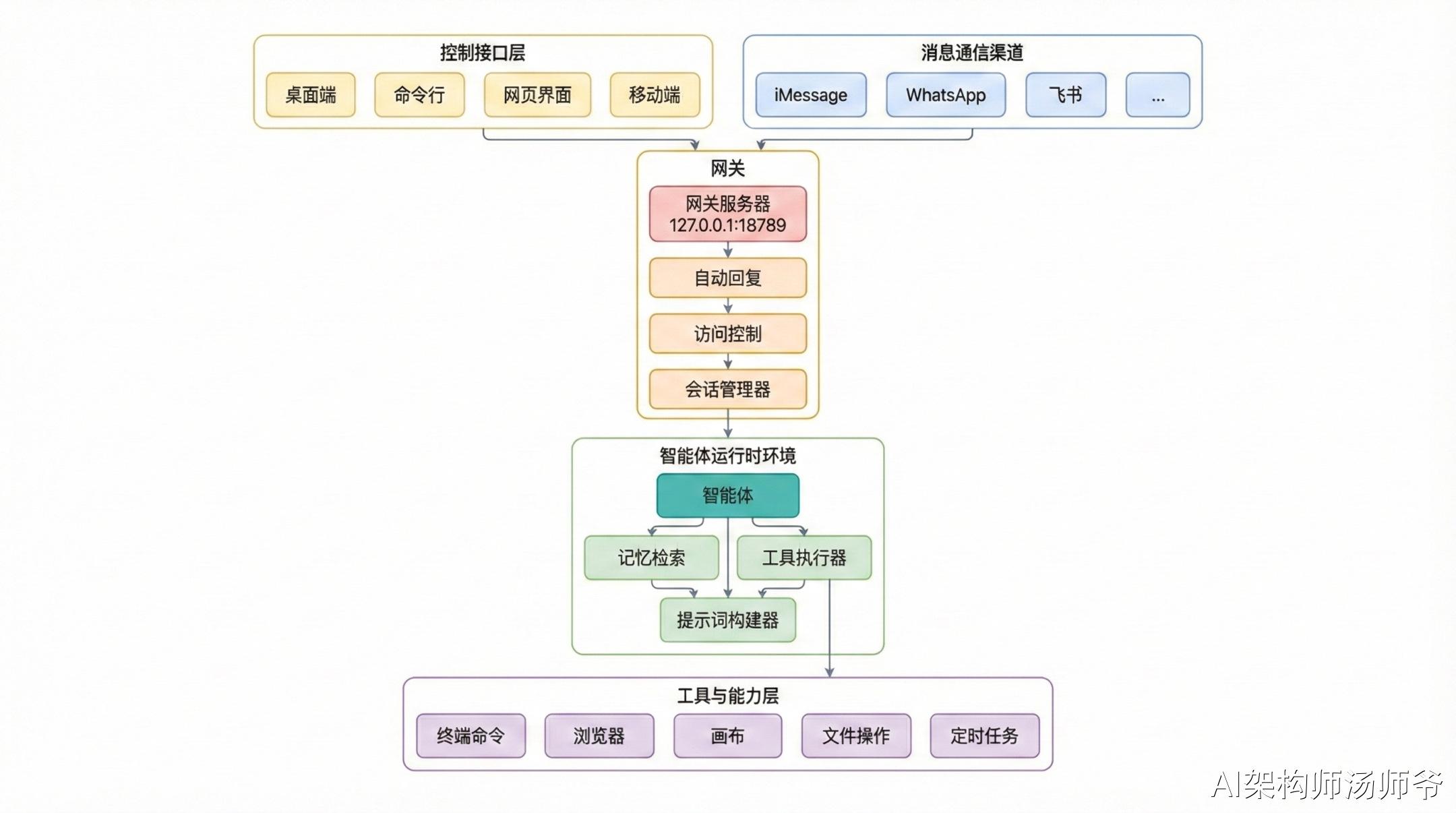 今天汤师爷就来给大家扒一扒 OpenClaw 的架构设计。
