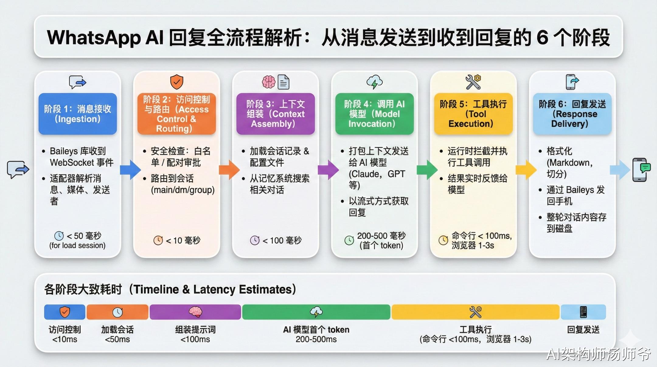 不管消息从 WhatsApp 还是 飞书来,提取出文字、图片、音频、视频、文档、表情反应和回复上下文后,OpenClaw 的其他部分就不用操心平台差异了。