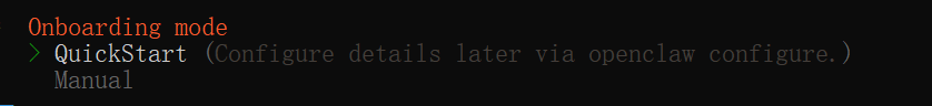 2、选择配置模式,这里选择快速启动