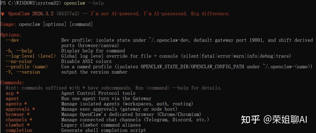 你知道这个openclaw –help,其实就知道所有的命令了。