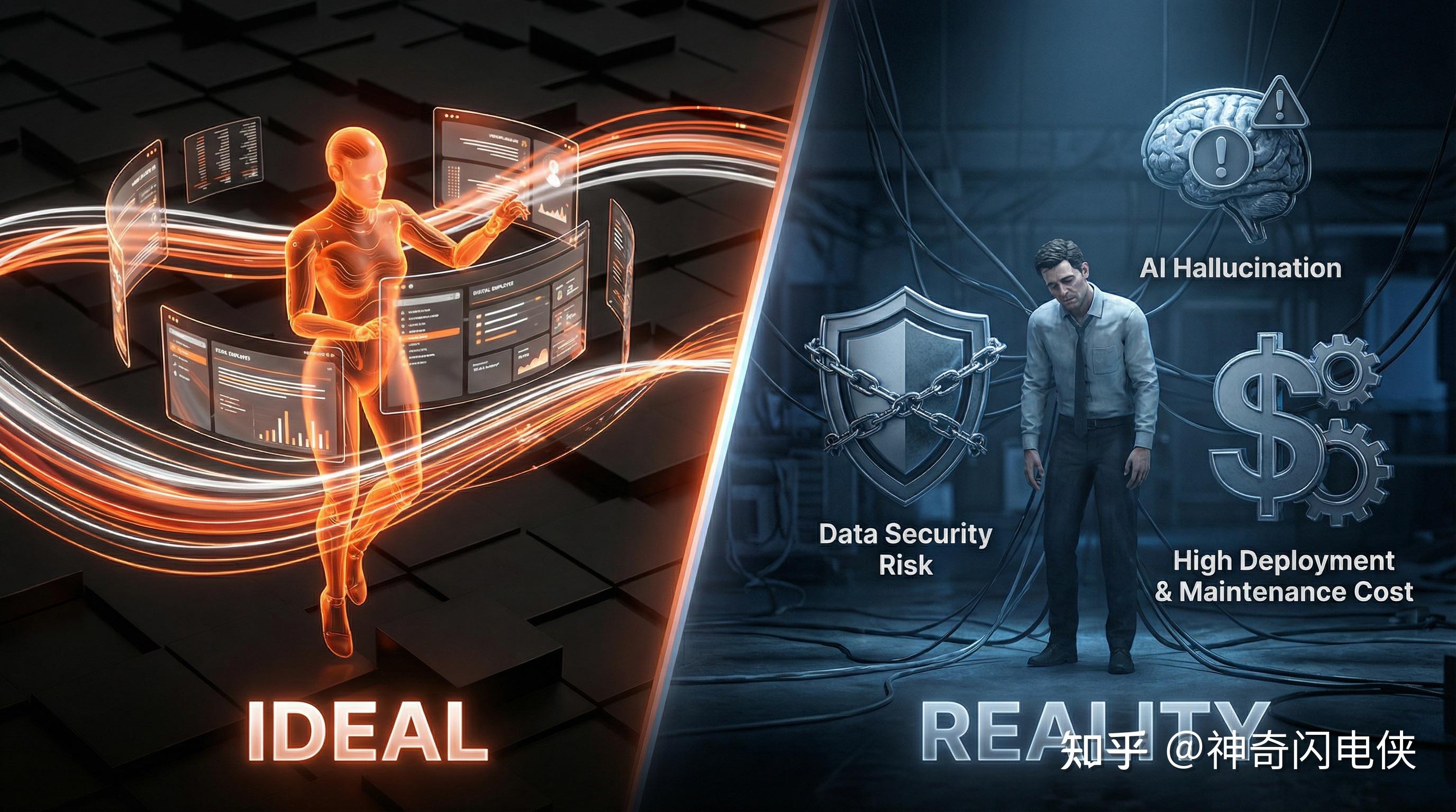 业务容错率与”幻觉”失控: 客服和销售涉及报价、合同等严肃履约环节,企业的容错率极低。但在处理超长且复杂的业务指令时,目前的模型依然存在”上下文遗忘”或执行偏移的风险。一个偶尔会算错报价的AI,是无法被允许直接面对核心客户的。这不是对大模型能力的质疑,而是对”人机协作界面”尚未成熟的客观描述。