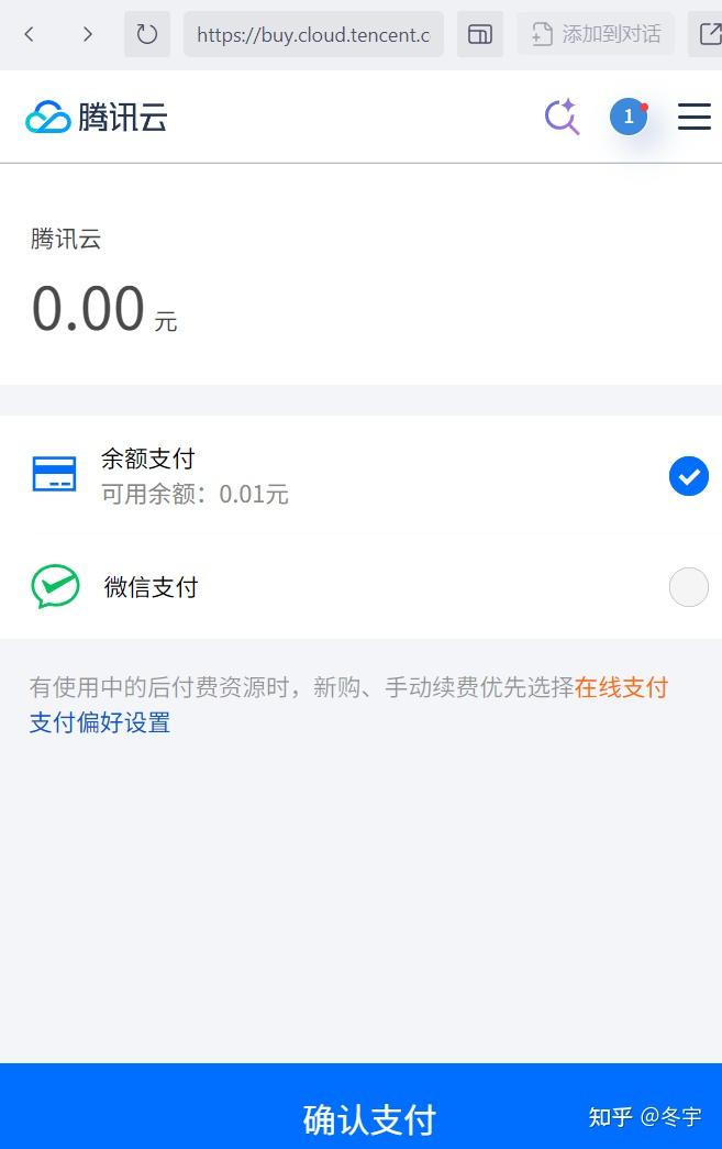 - 完成购买(免费): 系统会跳转到腾讯云的购买页面。在这里,你无需支付任何费用。