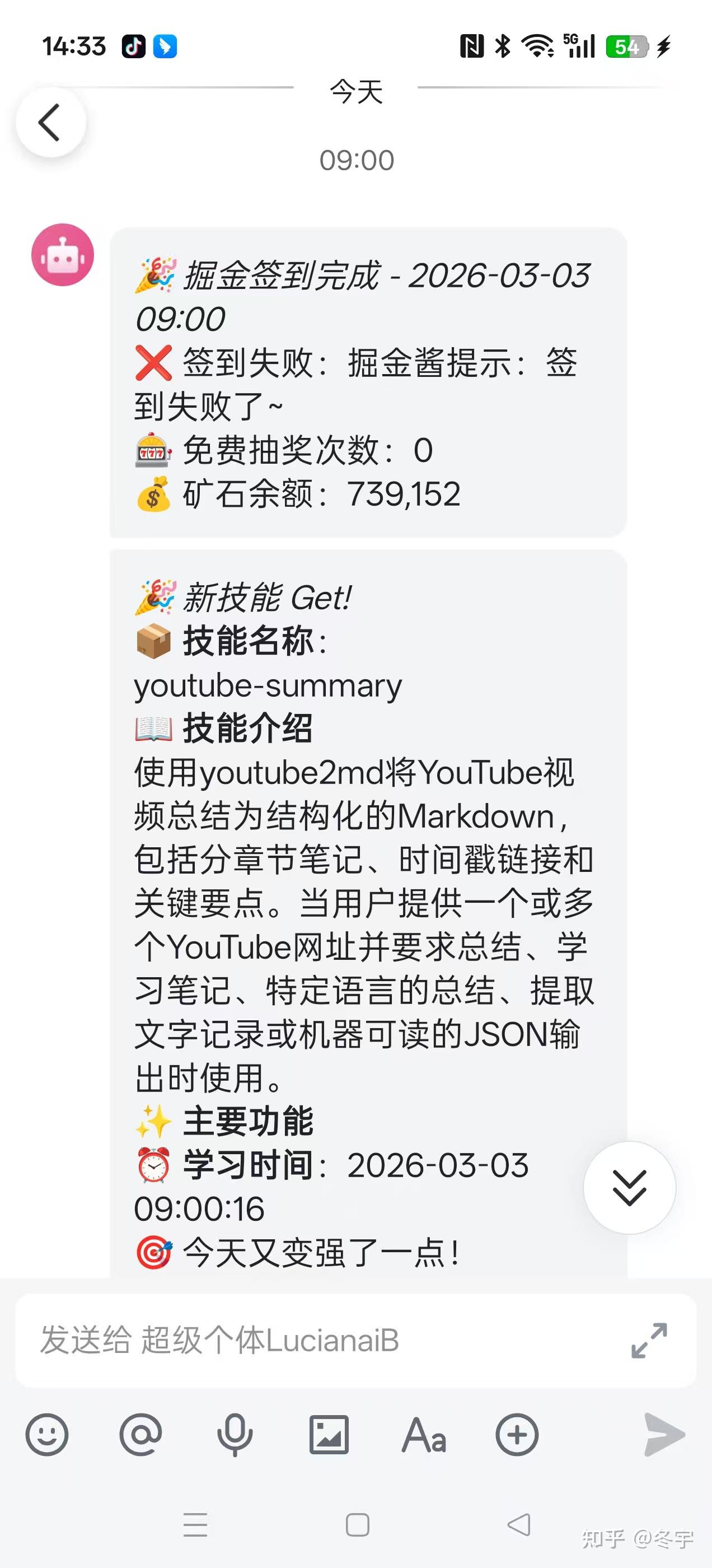 让 AI 每天学习新技能 这是最重要的一条指令,它赋予了 Openclaw 极大的自主性,让它学会自己解决问题,而不是事事都来问你。请将以下指令发送给它: