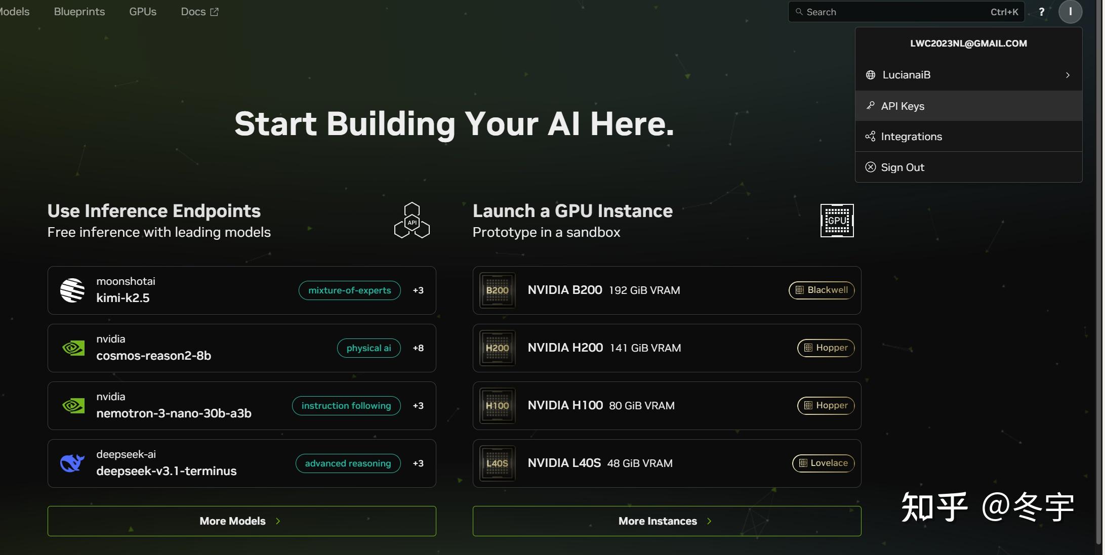 - 访问 NVIDIA Build 网站。推荐使用 Google 账号直接登录,比较方便。