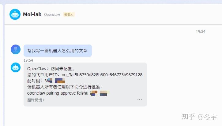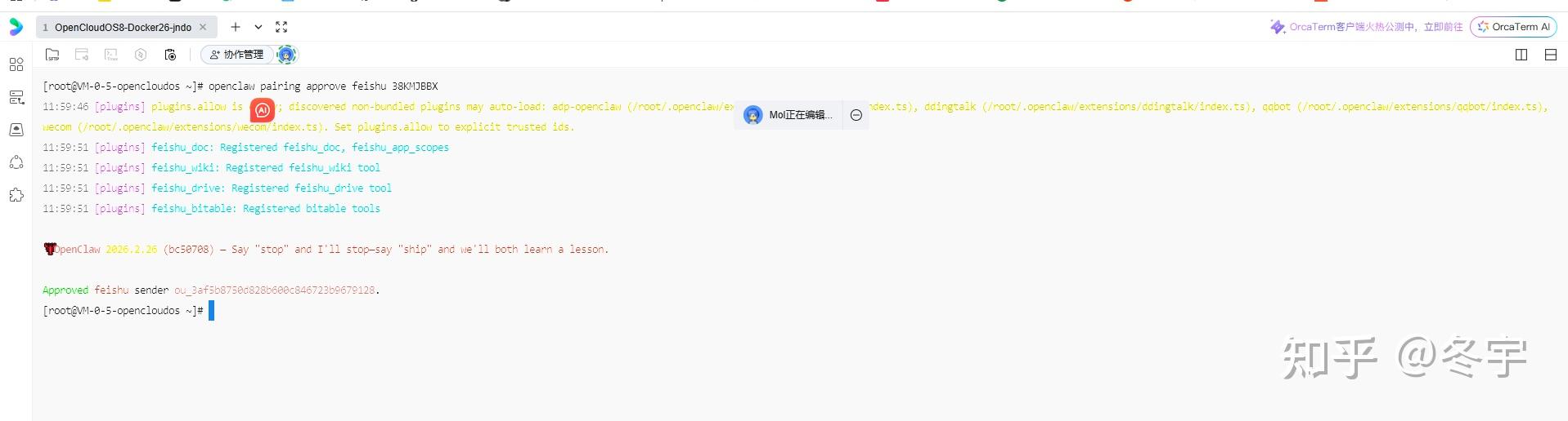 /root/.npm/_npx/…开头的长命令,然后按回车执行。 - 执行完毕后,关闭终端窗口。现在回到飞书,你的机器人应该就能正常对话了。