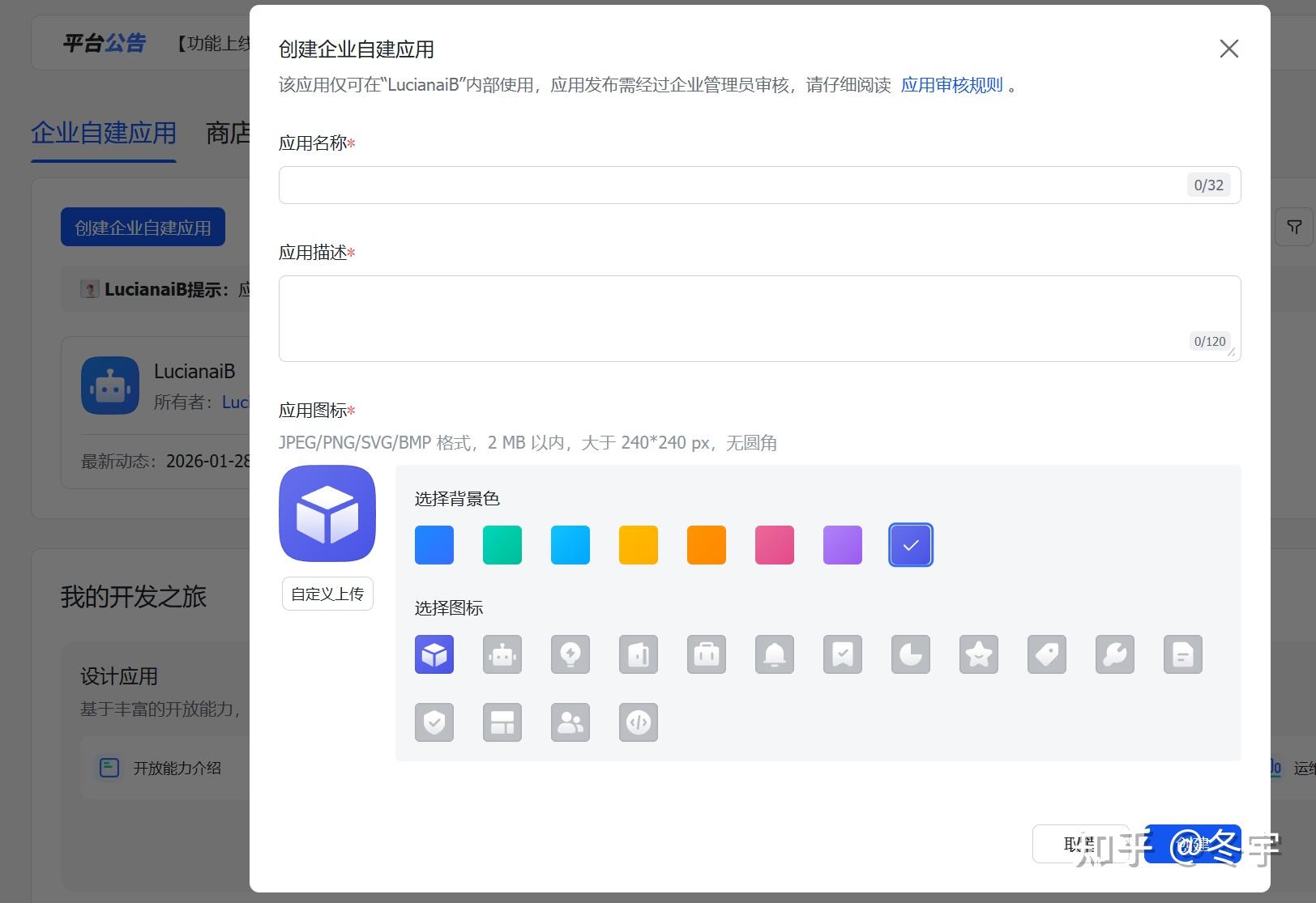 - 创建飞书应用: 打开 飞书开放平台,登录你的飞书账号。点击“创建应用”,选择“企业自建应用”,然后填写应用的名称(例如“我的AI助手”)和描述,点击“创建”。