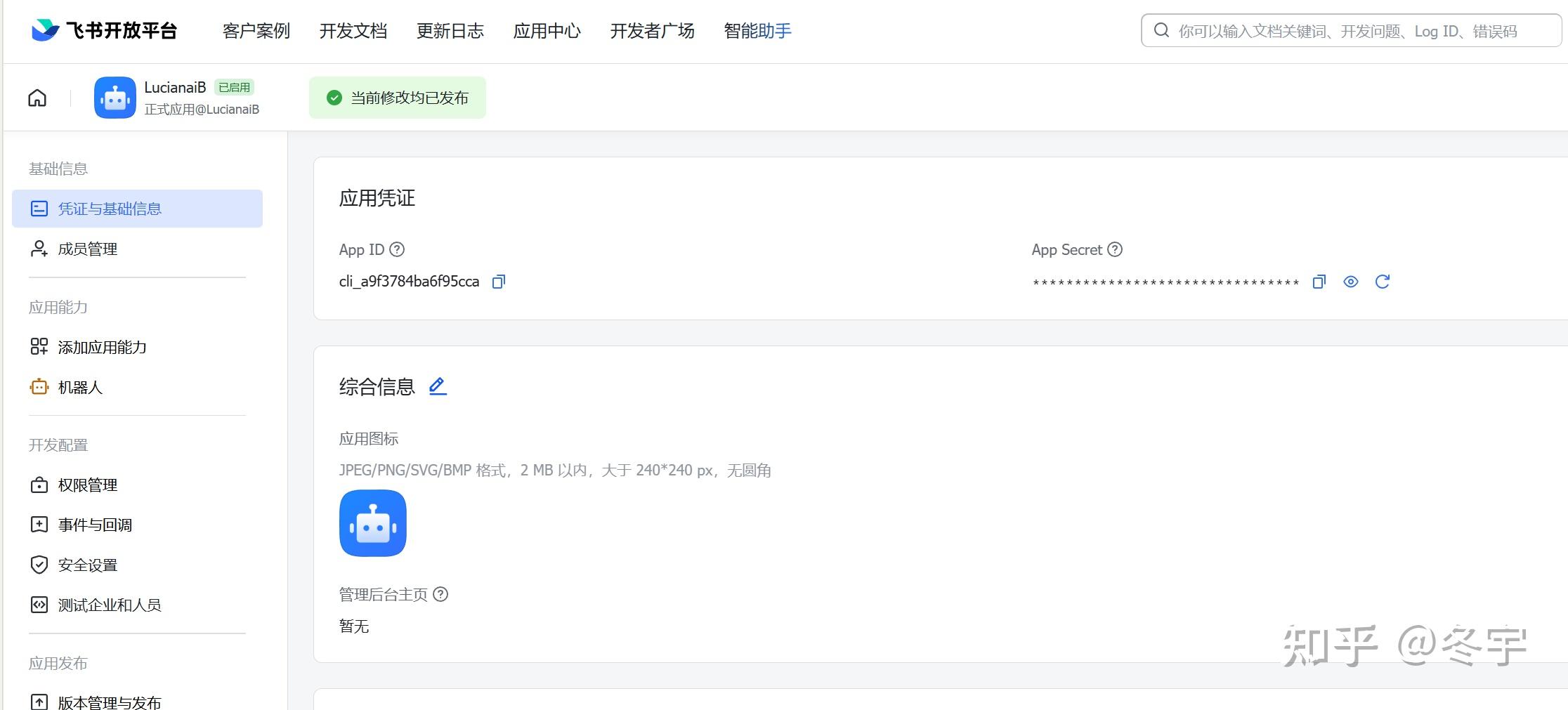 - 获取凭证: 创建成功后,进入应用详情页。在左侧菜单选择“凭证与基础信息”,在这里你可以找到