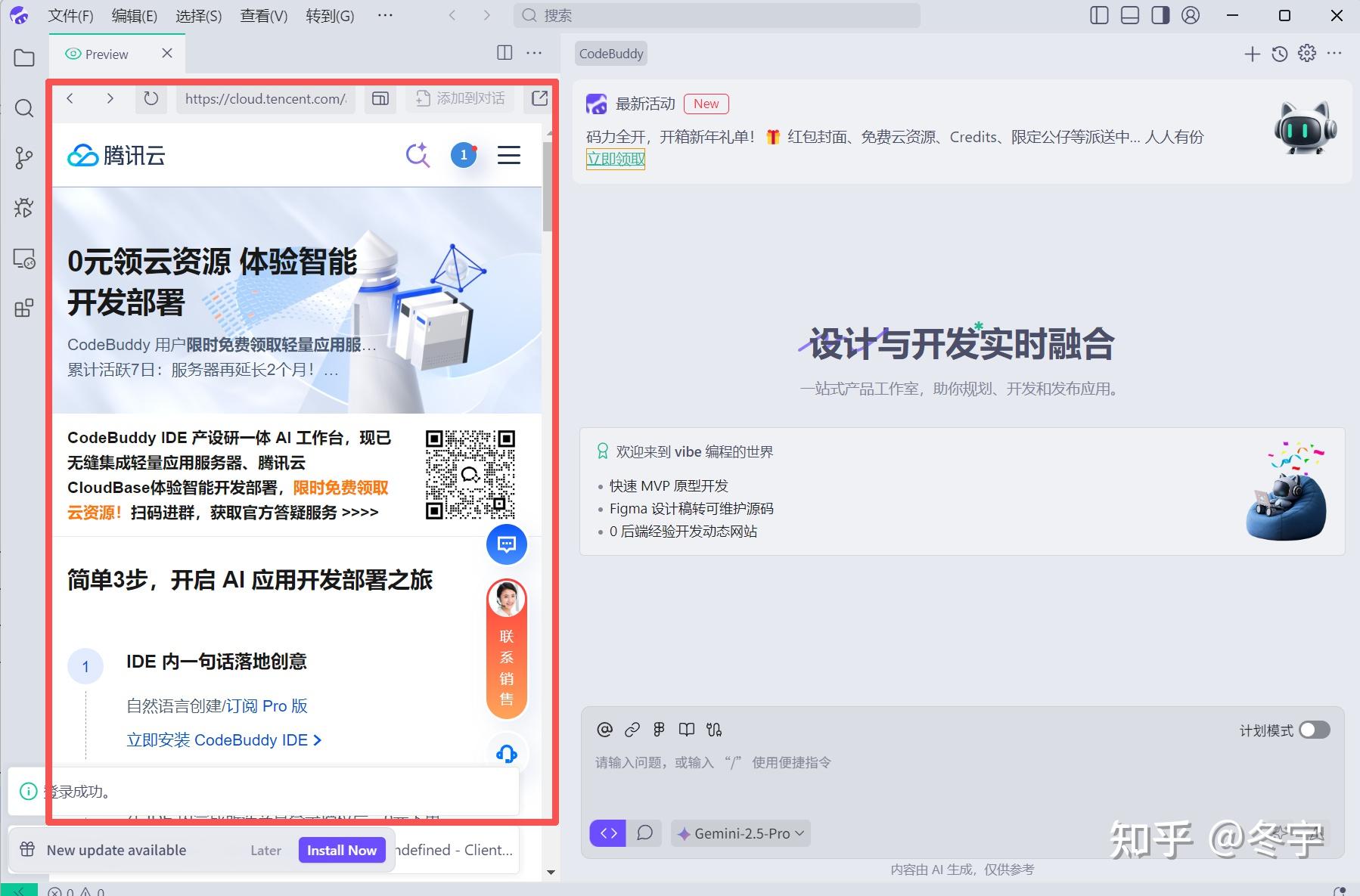 - 下载并注册 CodeBuddy: 在活动页面右上角,点击“下载”按钮,下载并安装 CodeBuddy 客户端。安装后,根据提示完成账号注册。