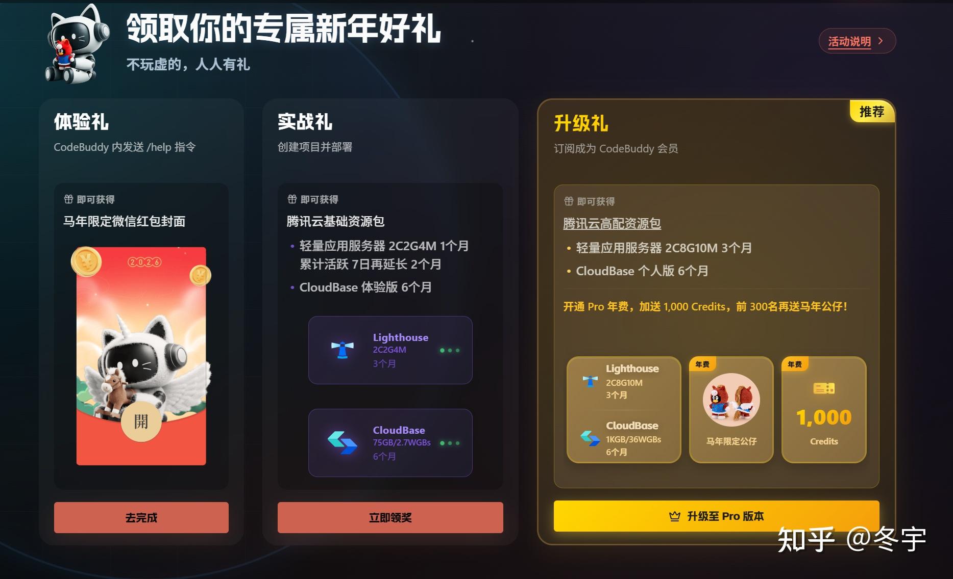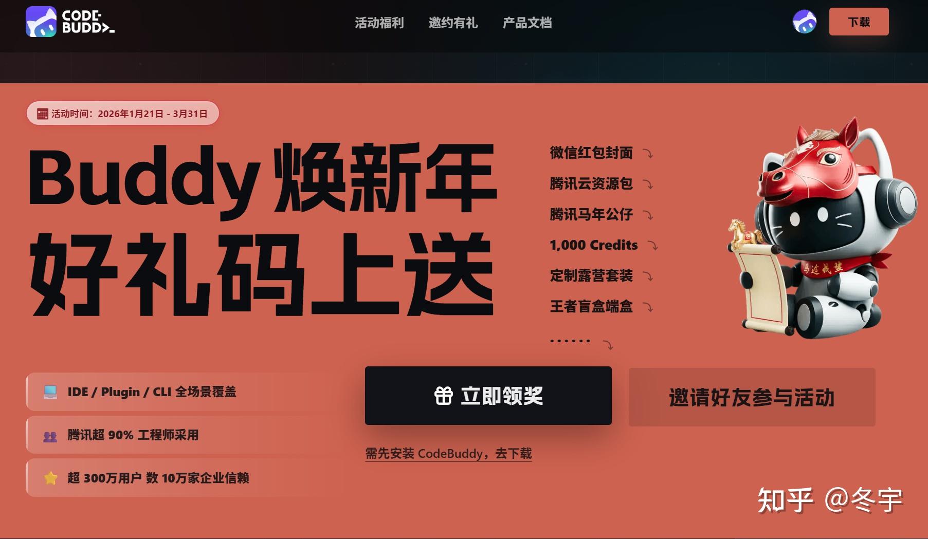 - 访问活动页面: 点击此链接 CodeBuddy 活动链接。注意: 此活动通常要求是新用户。如果你之前注册过 CodeBuddy,建议使用一个新的手机号或微信号参与。