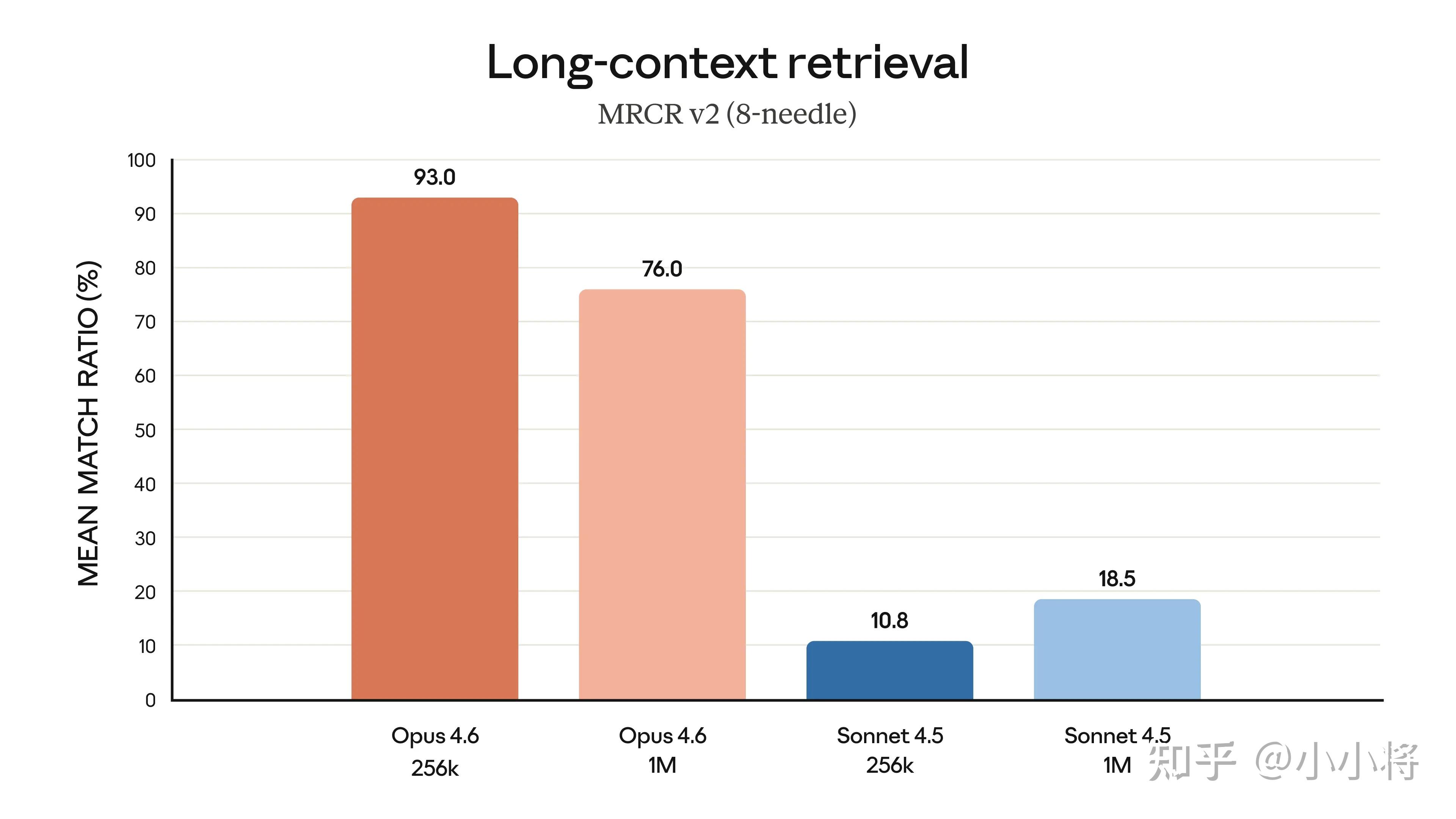 比如在 MRCR v2 的 8-needle 1M 版本测试中(一个“大海捞针”式基准,用于评估模型在海量文本中找出被“隐藏”信息的能力),Opus 4.6 的得分为 76%,而 Sonnet 4.5 仅为 18.5%。