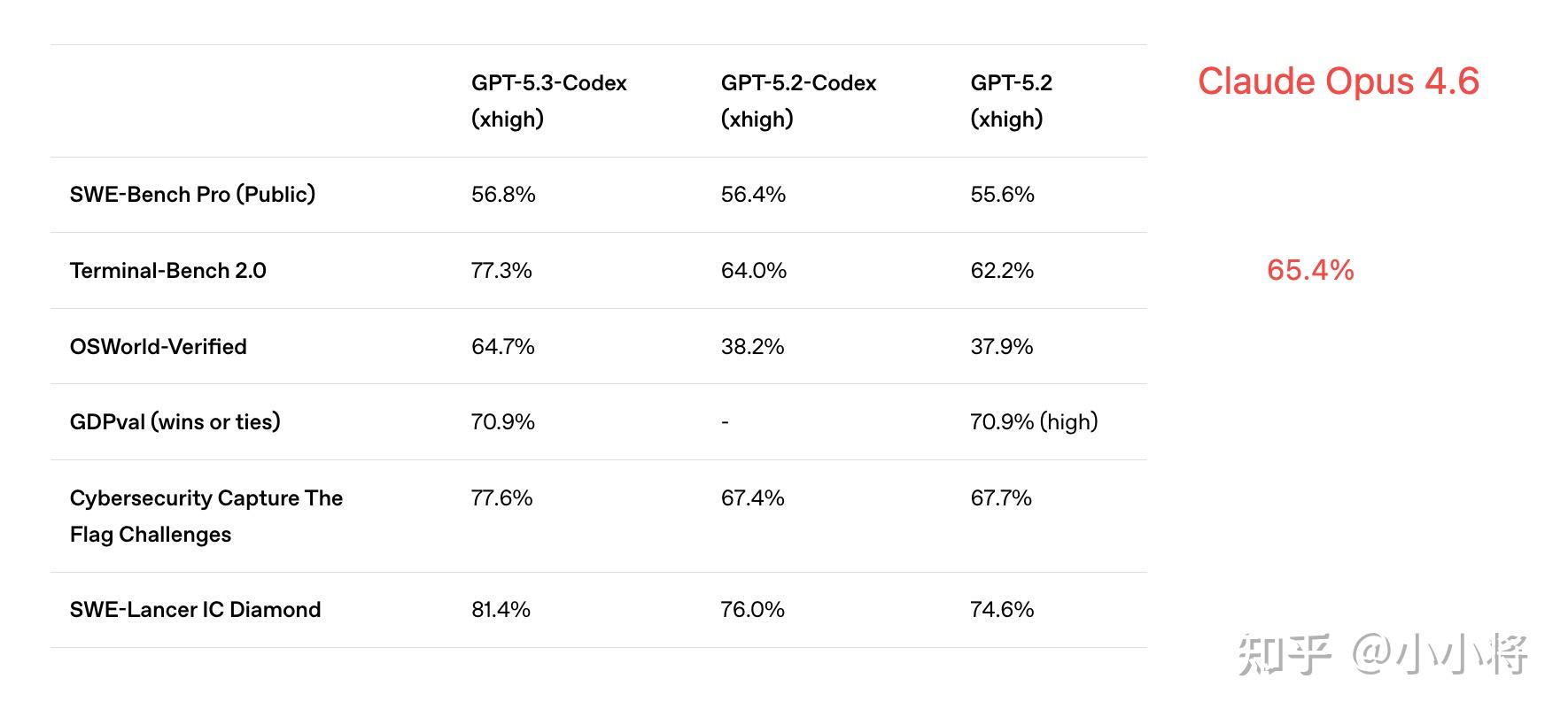 https://www.zhihu.com/video/ 不过,在Opus 4.6的推出的同时,OpenAI也在昨晚发布了GPT-5.3-Codex,在 Terminal-Bench 2.0 上,GPT-5.3-Codex 达到了77.3%,显著超过了Opus 4.6。Anthropic和OpenAI真是一对冤家。