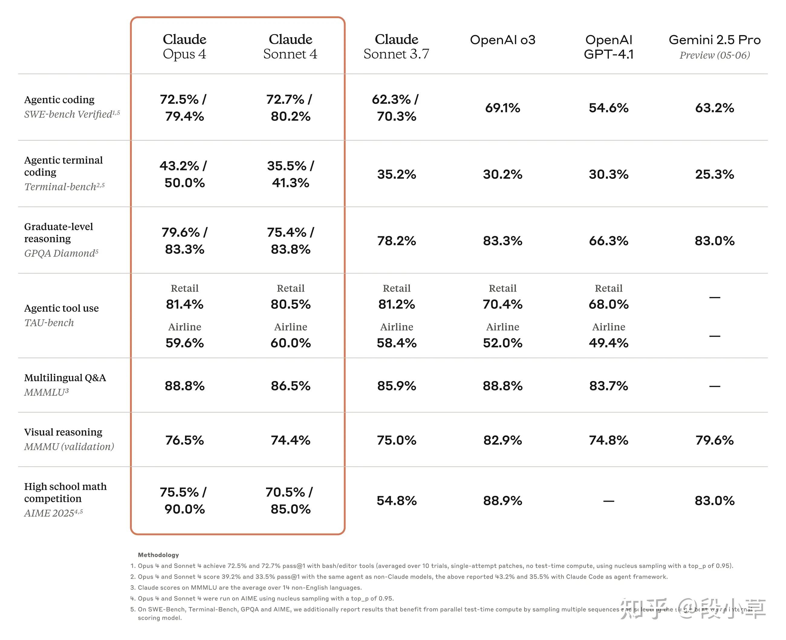 Anthropic 官方数据显示,Claude 4 在编程基准测试中名列前茅: