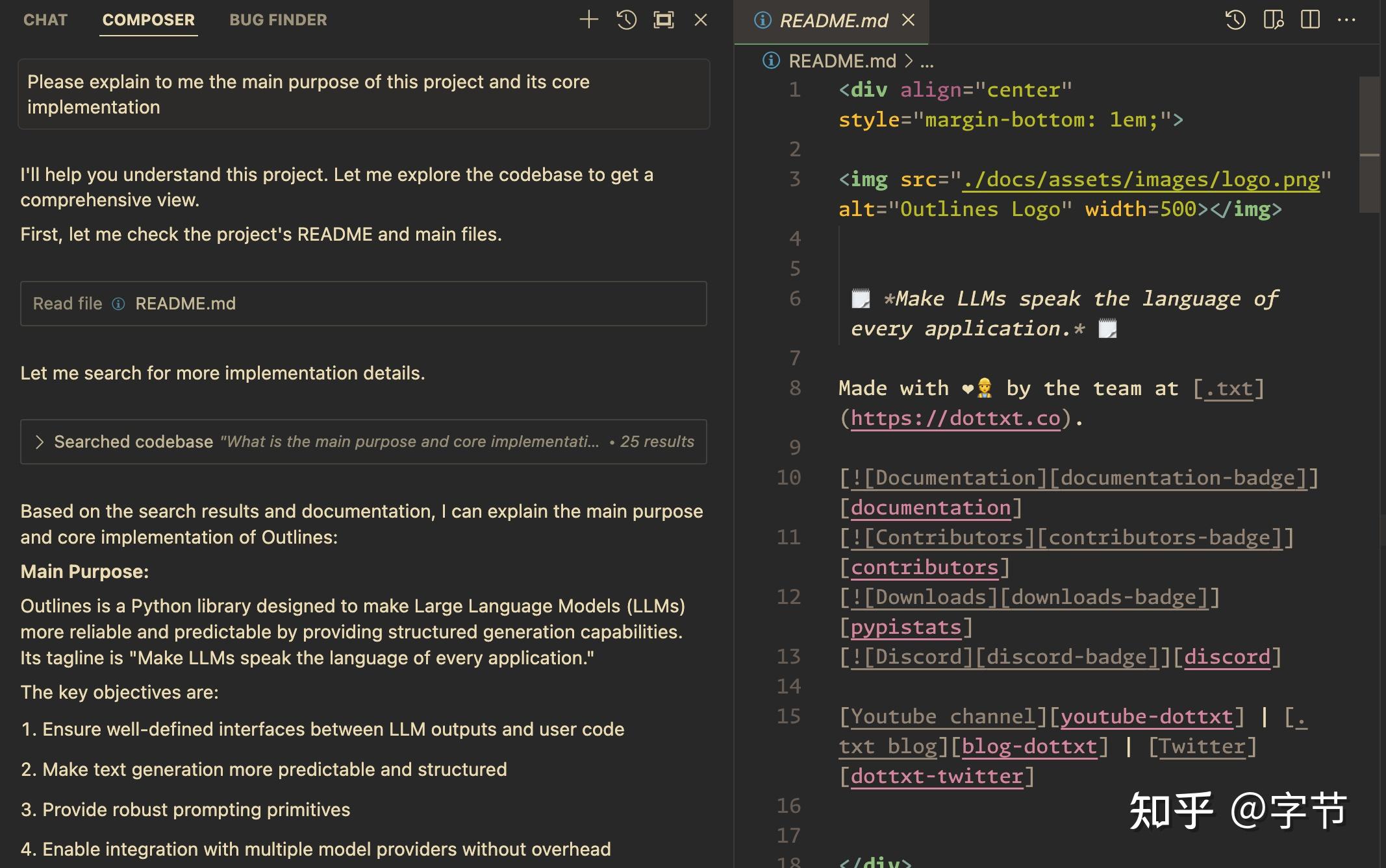 之前也有一些演示将 composer 用于代码之外的领域,例如将个人知识库存在 Obsidian 这类本地 markdown 文件中,再用 composer 进行“AI 检索问答”。不过新版本里好像 composer 更加聚焦在了代码场景,我尝试了几次都没有触发文档检索。倒是 chat 里可以通过@Codebase来实现这个效果。