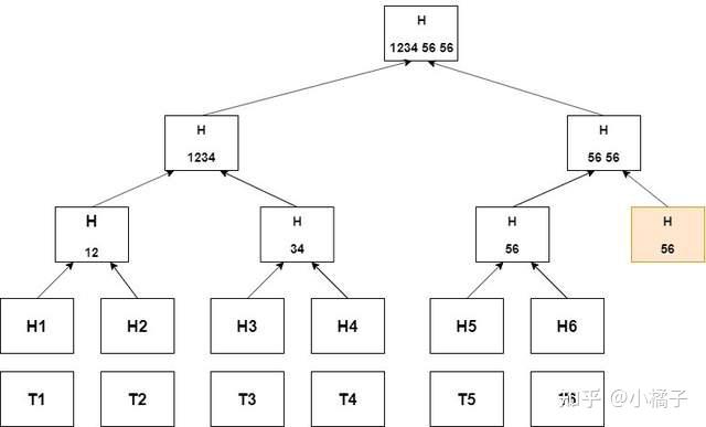 每条数据(如文件)都有自己的唯一指纹(哈希值);成对的指纹被组合并赋予新的指纹这个过程持续进行,直到只剩下一个主指纹(根哈希值)